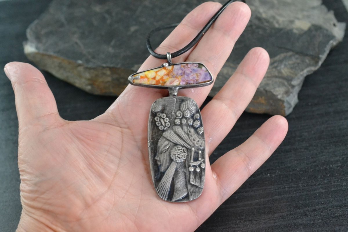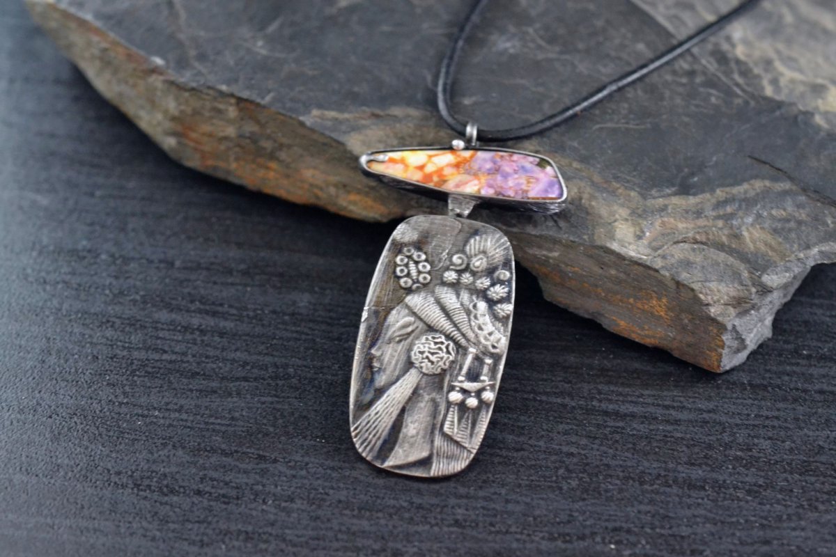Trochu jiný náhrdelník s variscitem a obrázkem Afrodity (měděný lisovaný plátek)