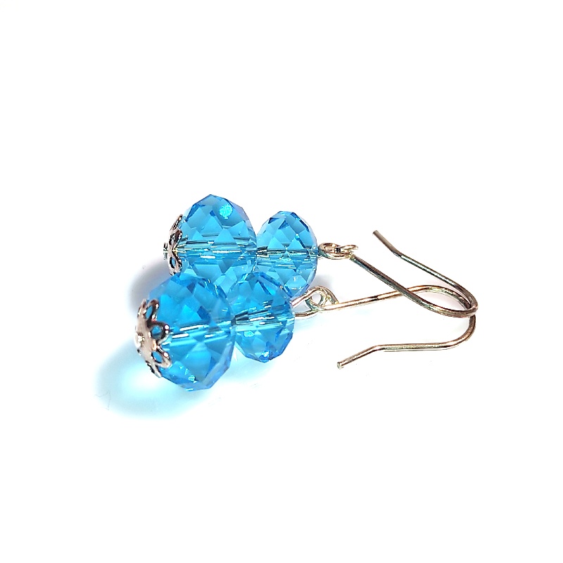 Elegantní společenské náušnice s modrými broušenými rondelkami