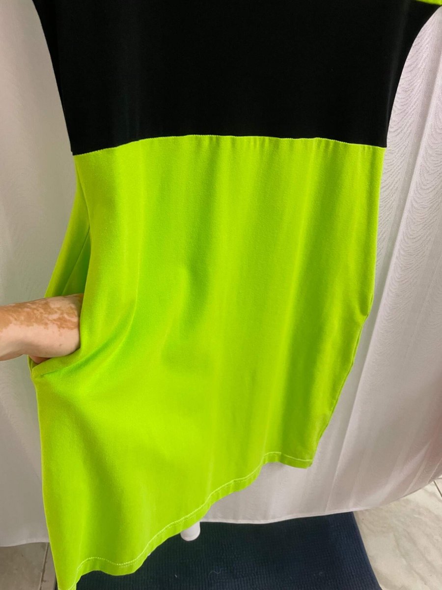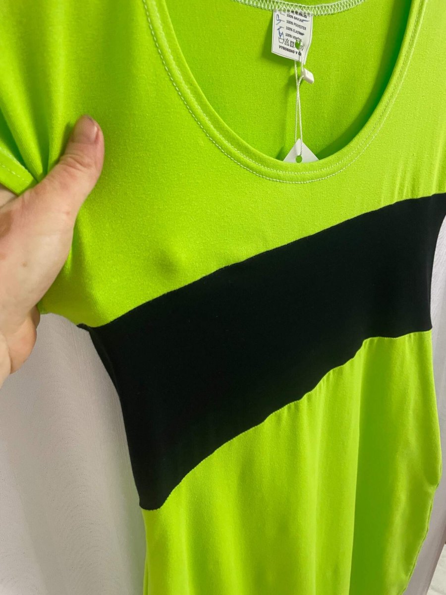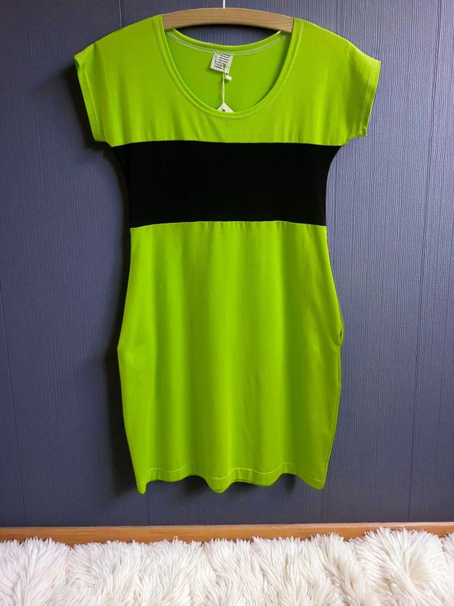 Letní šaty – Svítivá žlutozelená s černou
