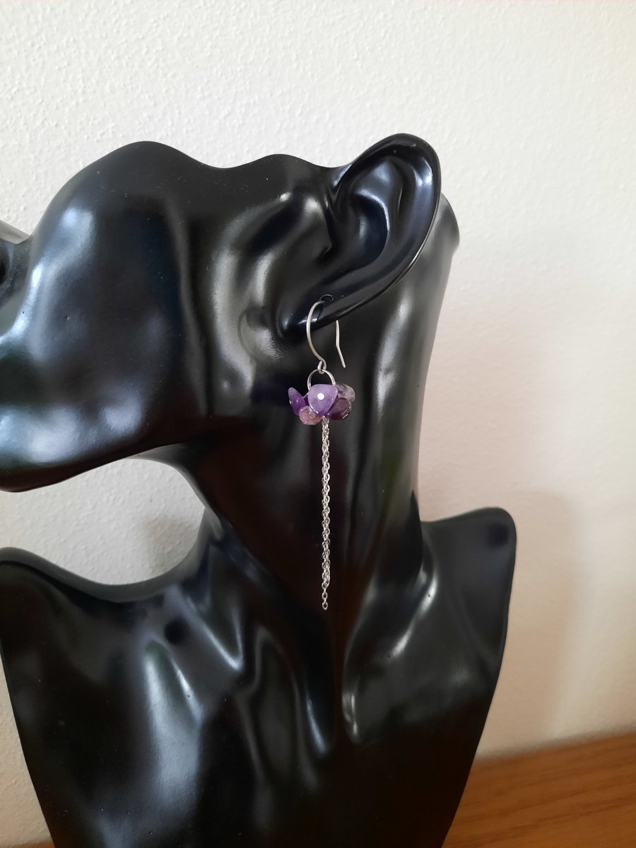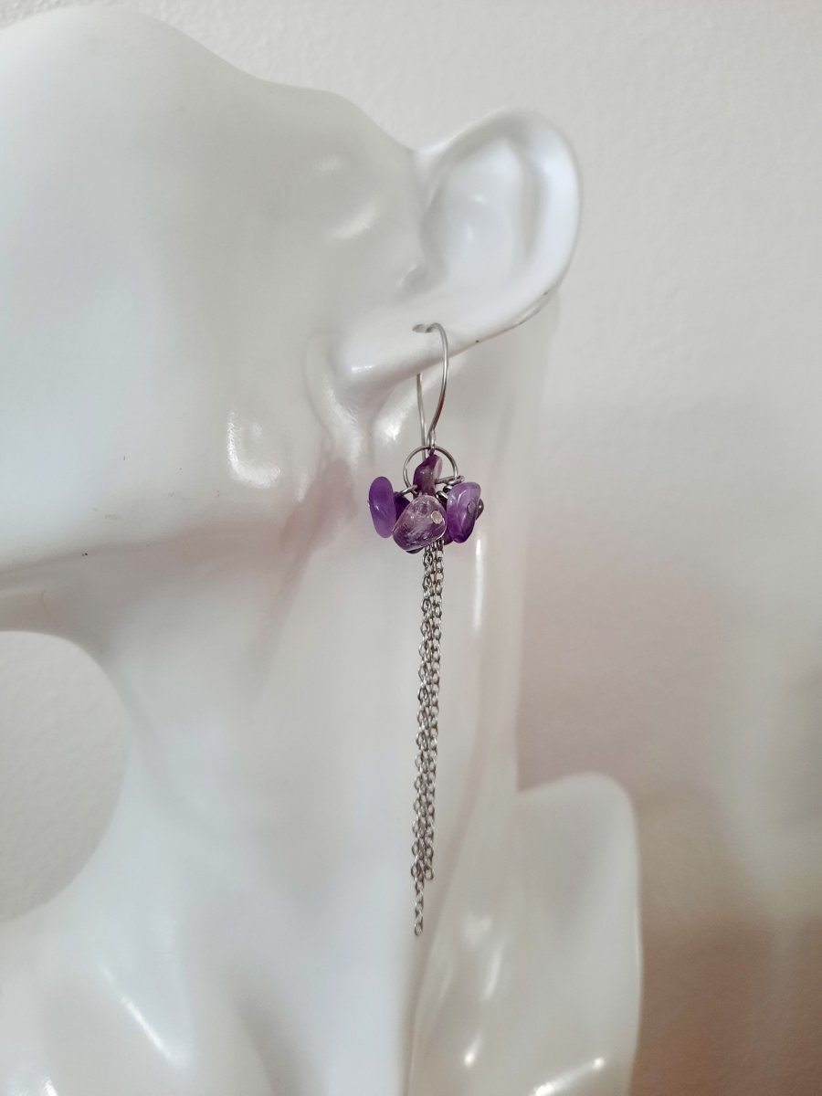 Náušnice jsou vyrobeny z chirurgické oceli 316L, ozdobené kamínky Ametystu.