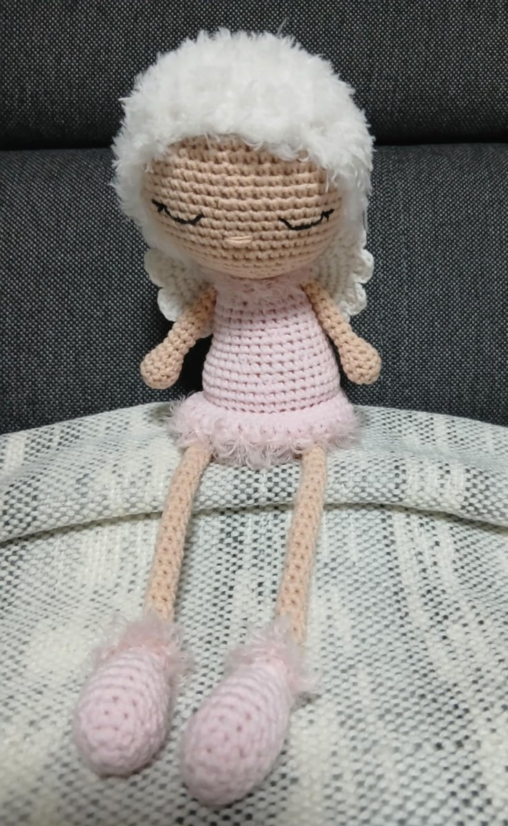 Háčkováno ze směsové příze bavna/akryl a vlásky z chlupaté příze polyamid), naplněné dutým vláknem.