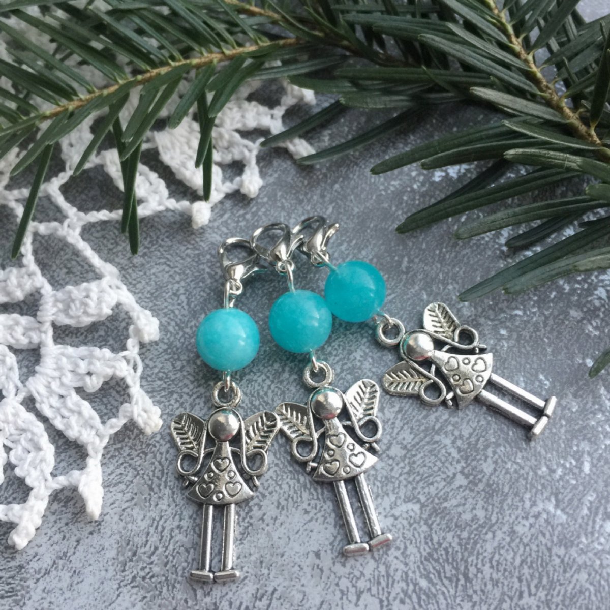 Přívěsek na kabelku, na bat'ůžek, na mobil nebo na klíče s karabinkou - andělka a amazonitová kulička. Délka 4,5 cm