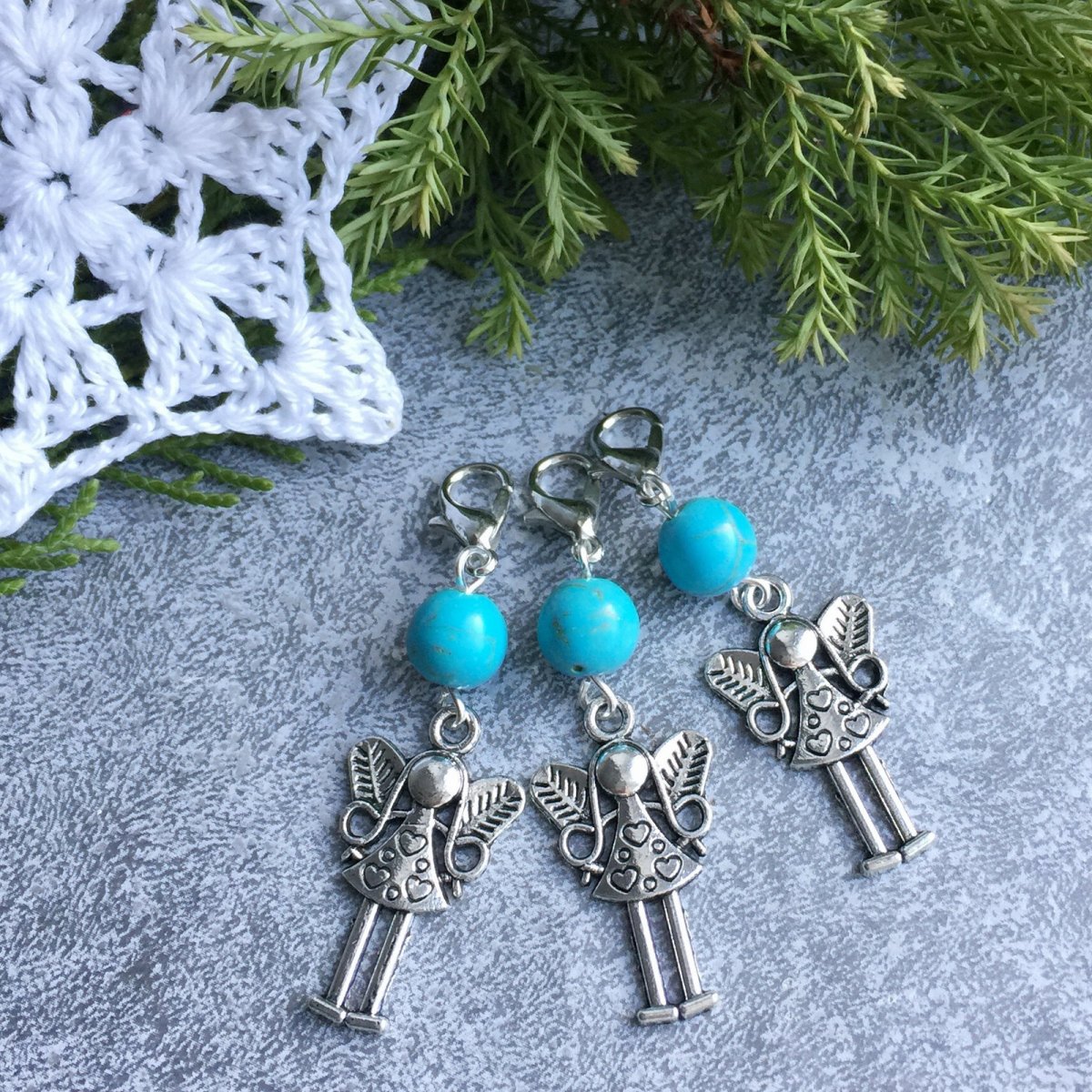 Přívěsek na kabelku, na bat'ůžek, na mobil nebo na klíče s karabinkou - andělka a růženínová kulička. Délka 4,5 cm