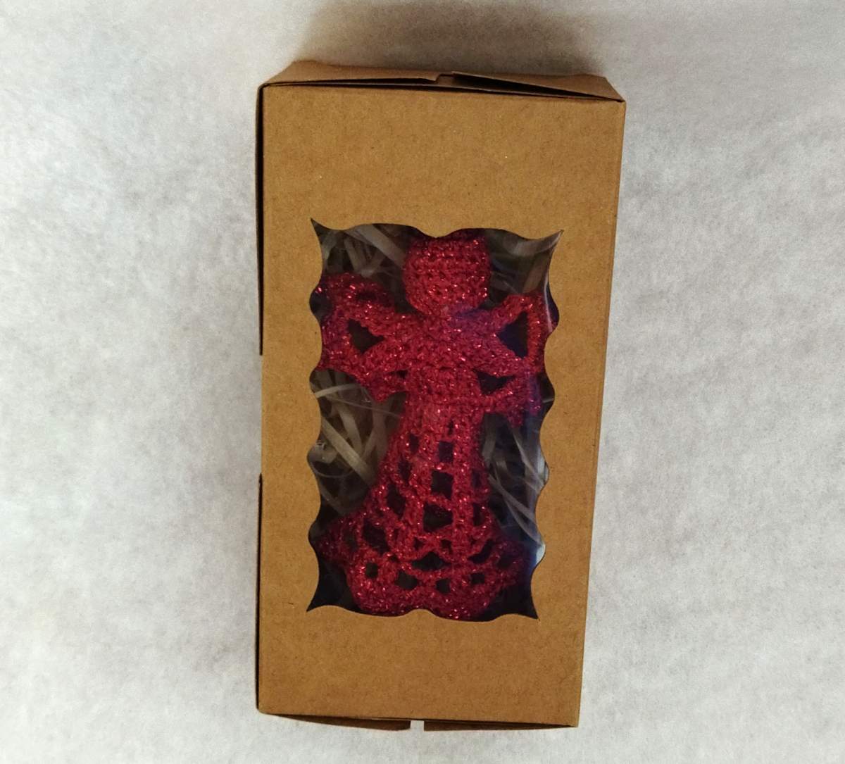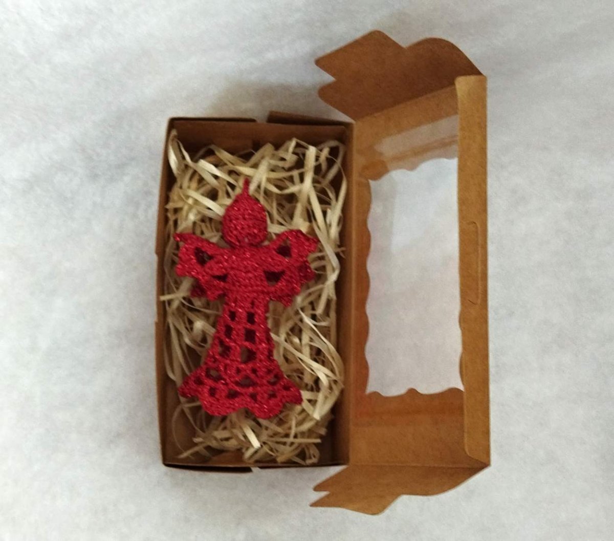 Andílek je uháčkovaný z vysoce kvalitní metalizované červené efektní příze německé výroby. Je pečlivě naškrobený, aby krásně držel tvar. Jeho výška je cca 9cm. Skvěle se hodí jako ozdoba na vánoční stromeček, věnec nebo jako přízdoba k dárkům. Nebo ho můžeme postavit volně na vánoční stůl nebo okno. Fantazii se meze nekladou.