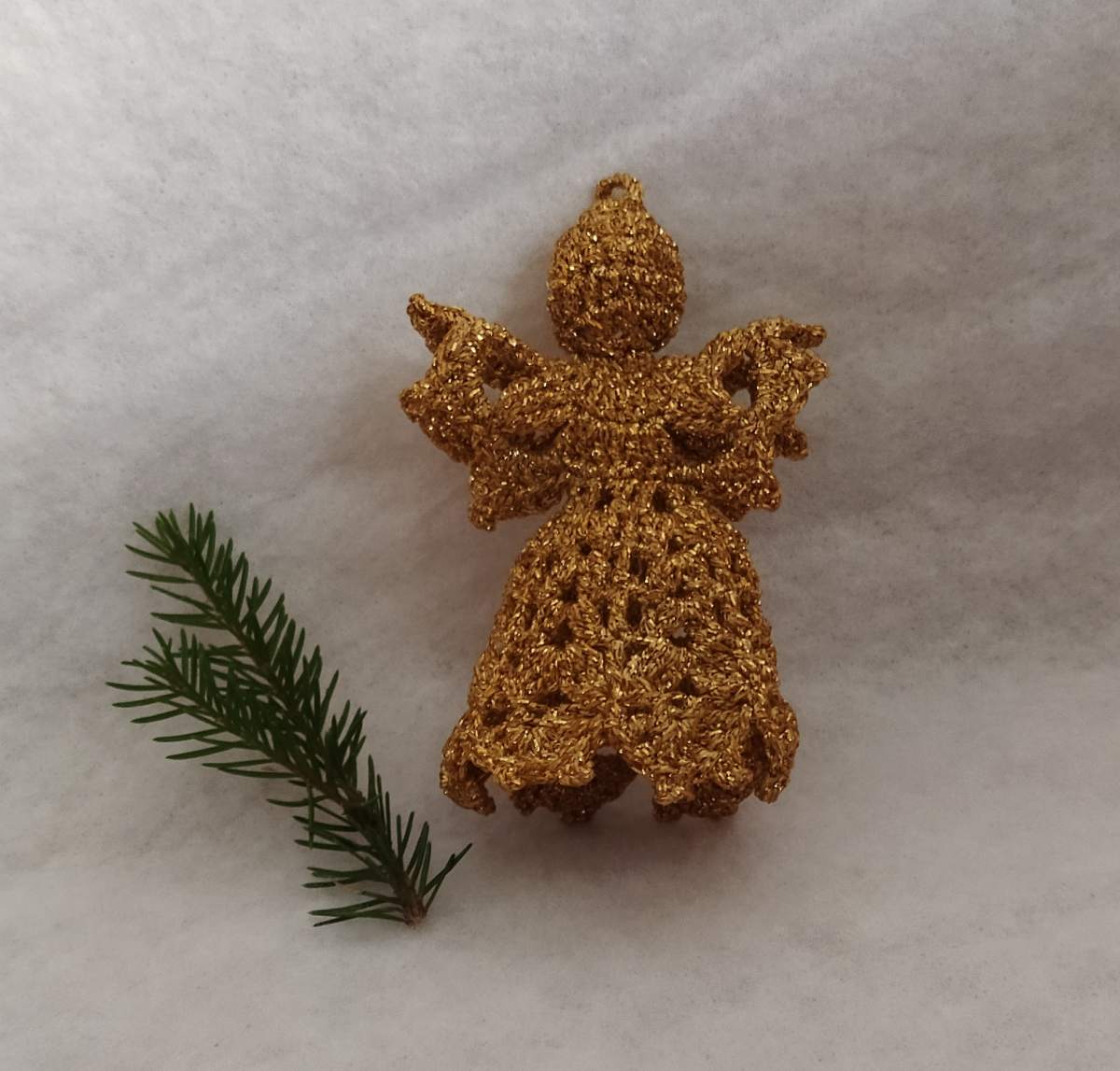 Vánoční andílek z efektní příze – ručně háčkovaný
