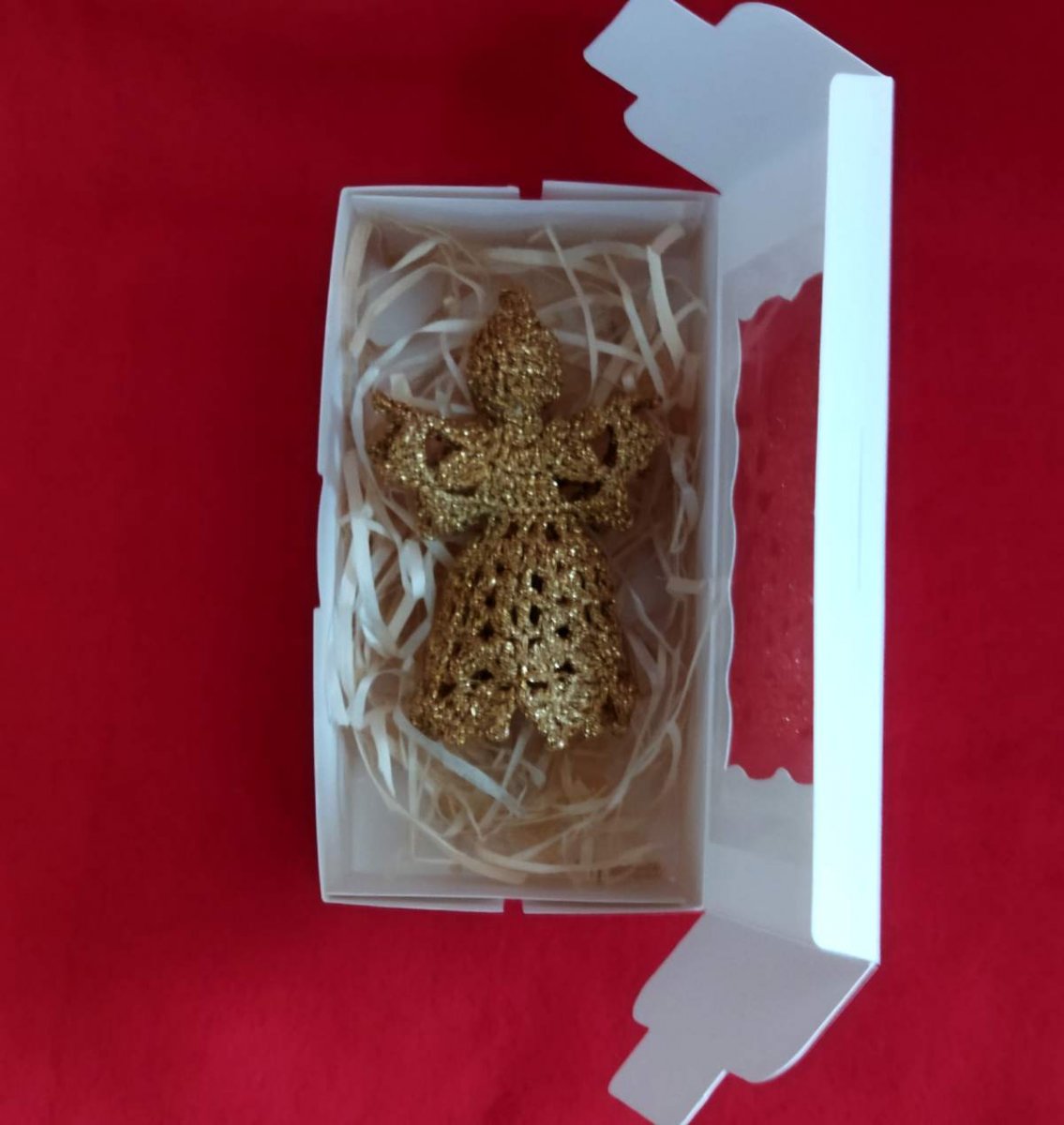 Andílek je uháčkovaný z vysoce kvalitní metalizované zlaté efektní příze německé výroby. Je pečlivě naškrobený, aby krásně držel tvar. Jeho výška je cca 9cm. Skvěle se hodí jako ozdoba na vánoční stromeček, věnec nebo jako přízdoba k dárkům. Nebo ho můžeme postavit volně na vánoční stůl nebo okno. Fantazii se meze nekladou.