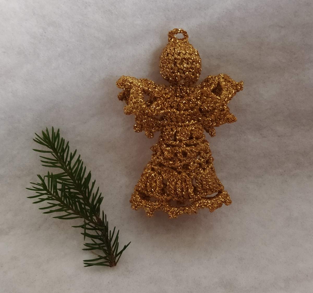 Vánoční andílek z efektní příze – ručně háčkovaný
