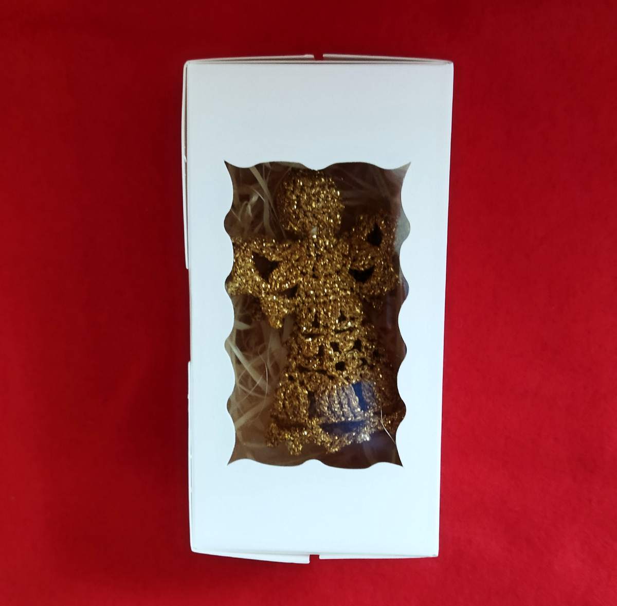 Andílek je uháčkovaný z vysoce kvalitní metalizované zlaté efektní příze německé výroby. Je pečlivě naškrobený, aby krásně držel tvar. Jeho výška je cca 9cm. Skvěle se hodí jako ozdoba na vánoční stromeček, věnec nebo jako přízdoba k dárkům. Nebo ho můžeme postavit volně na vánoční stůl nebo okno. Fantazii se meze nekladou.