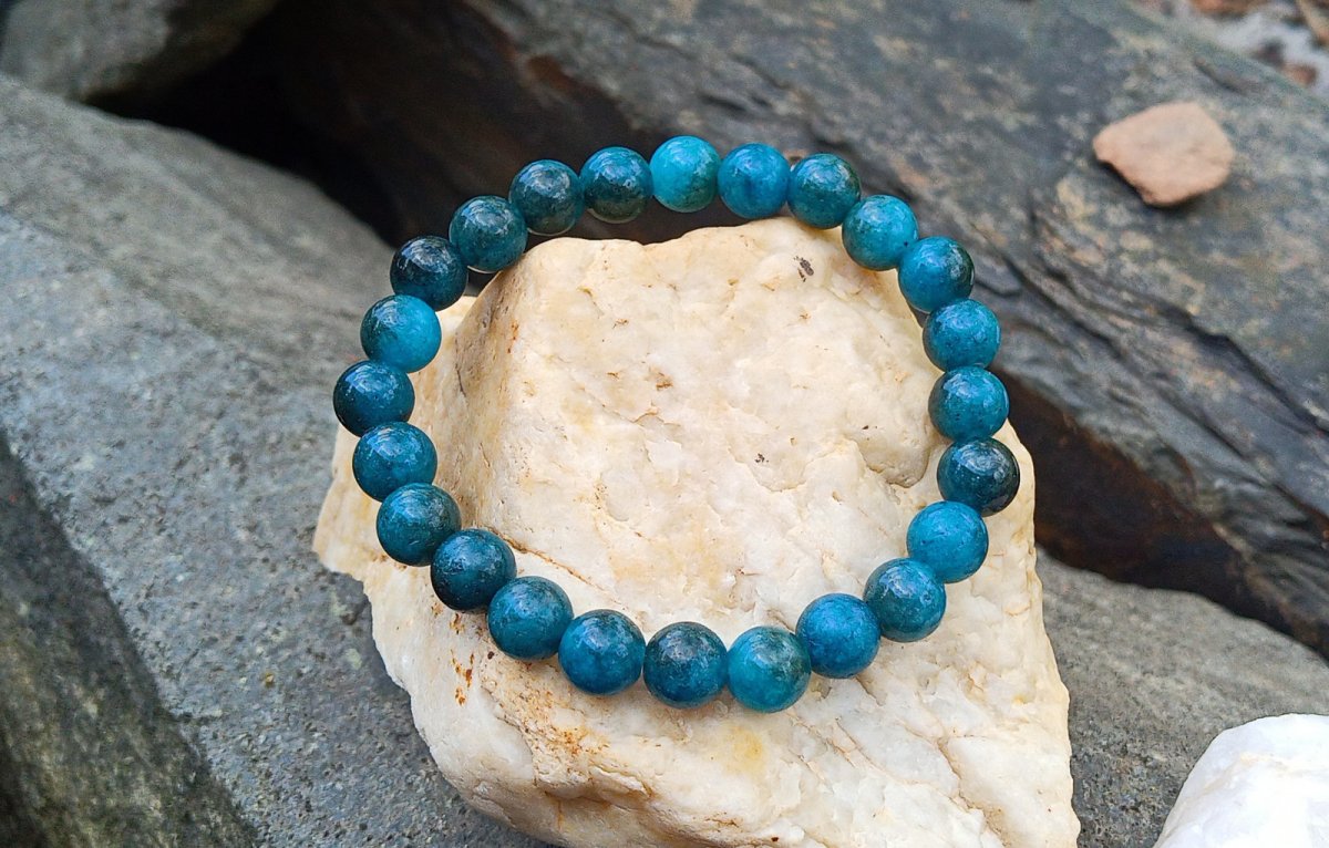 Krásně zbarvený apatit o průměru 8 mm v pružném náramku vhodném pro muže i ženy.