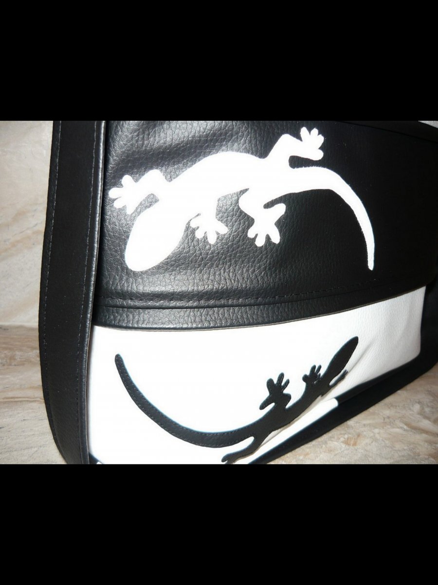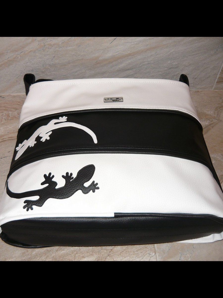 Originální, sportovně-elegantní černo-bilá kabelka s aplikací černé a bílé ještěrky.