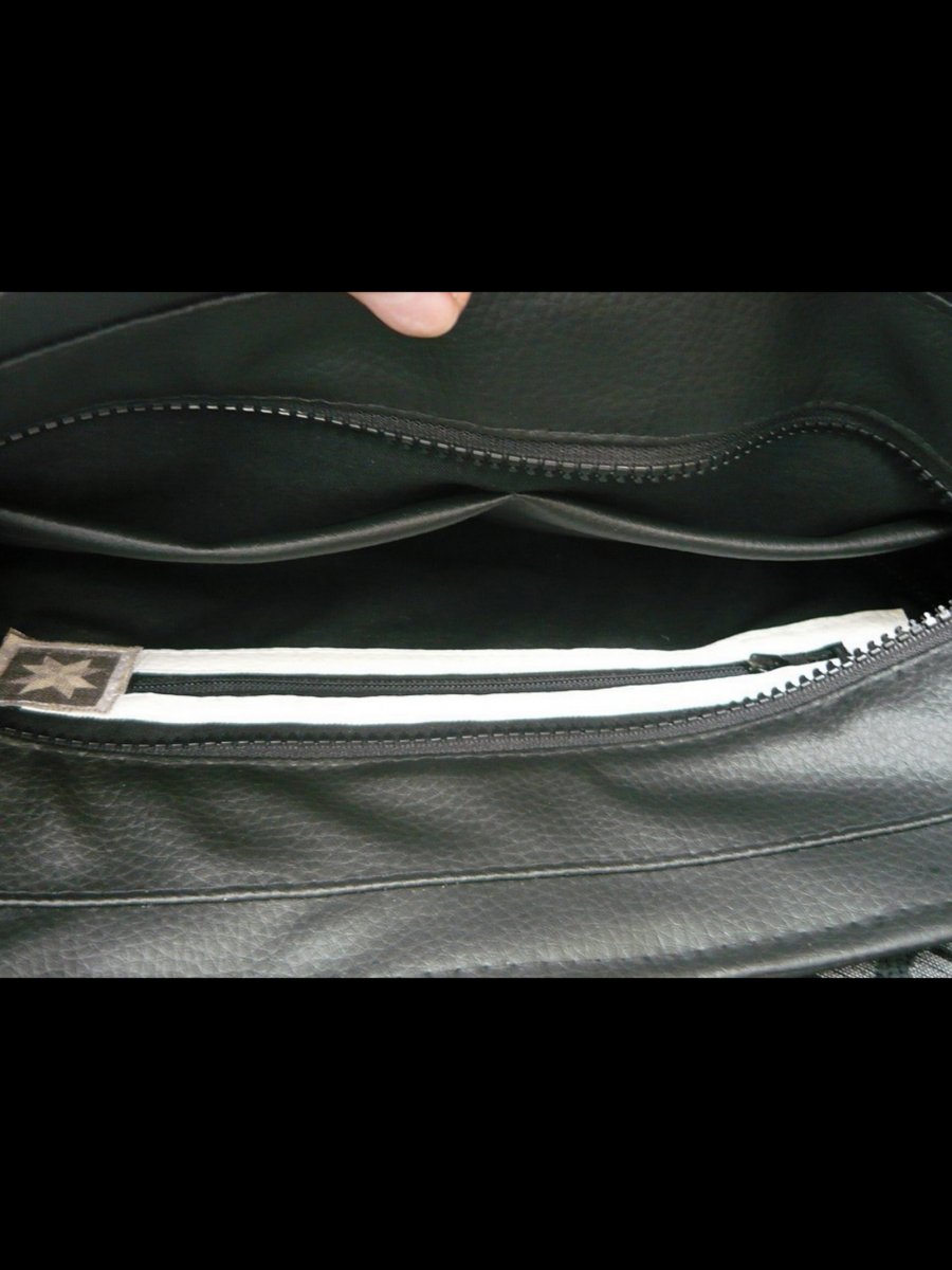 Vnitřek obsahuje dvě prostorné kapsy (jedna kapsa se zipem a druhá naproti dvojkapsa)