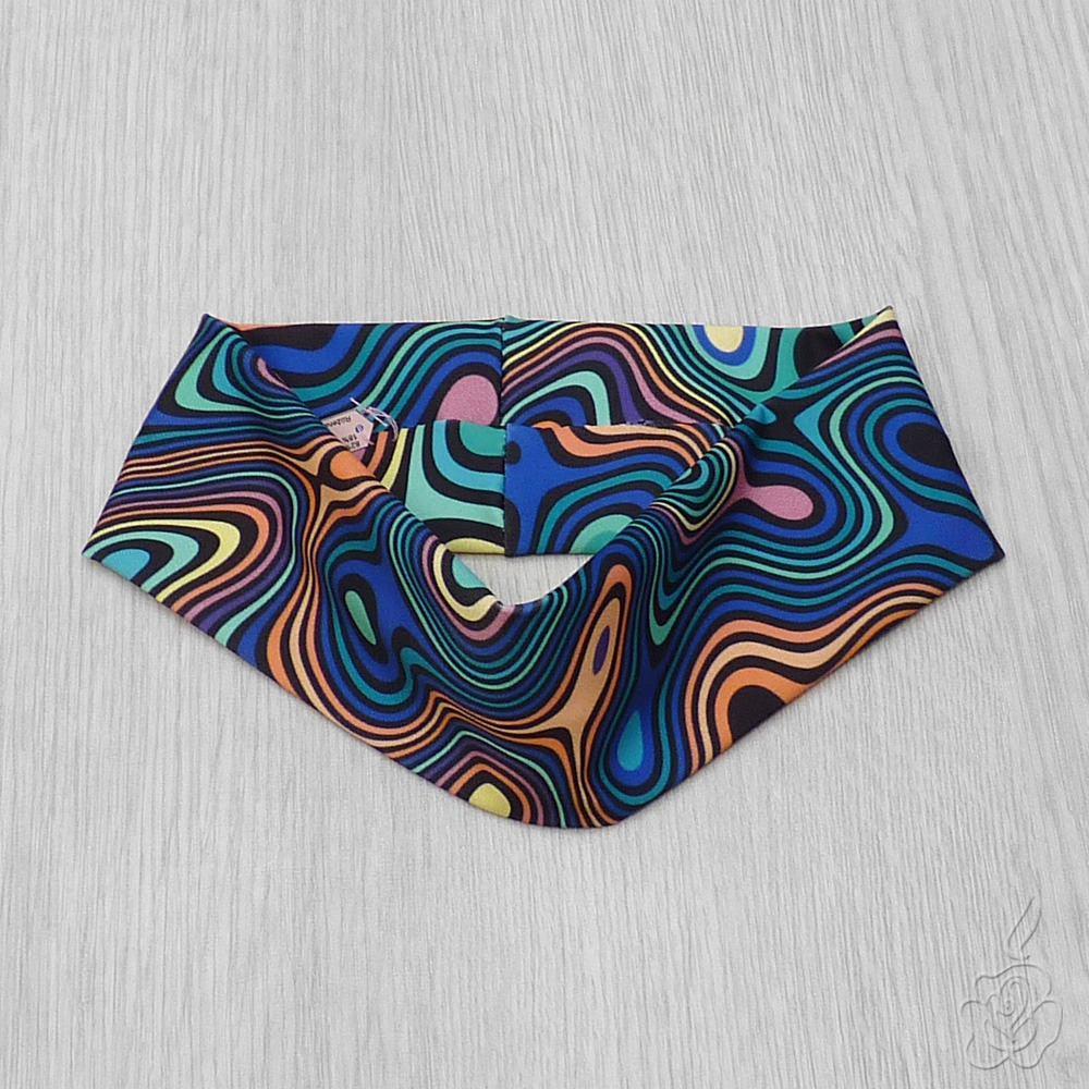 Dívčí nebo dětská čelenka z pružné látky s barevným vzorem.