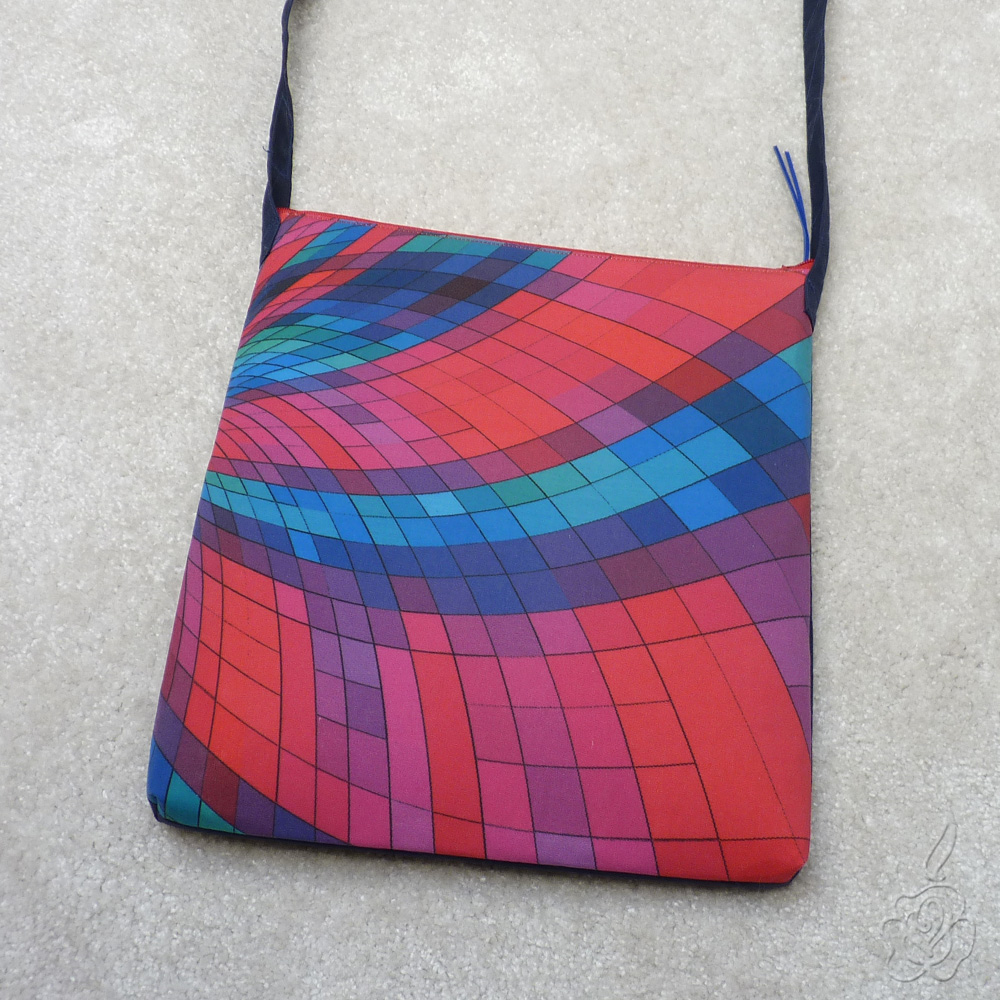 Na přední straně je bavlněný panel v odstínech červené, modré, fialové, růžové...