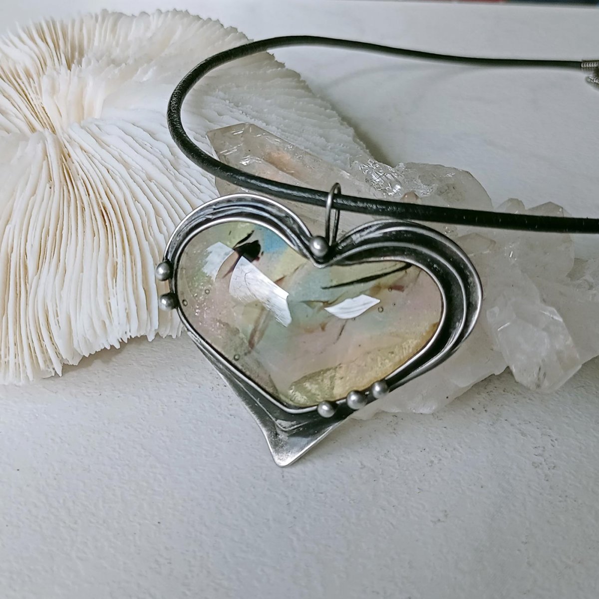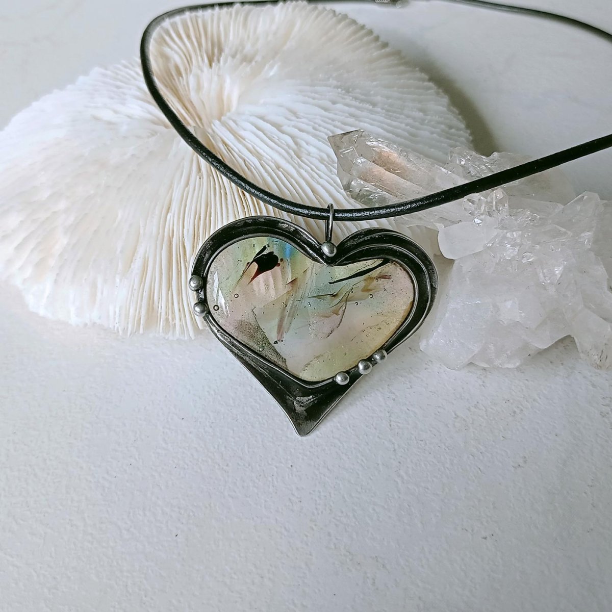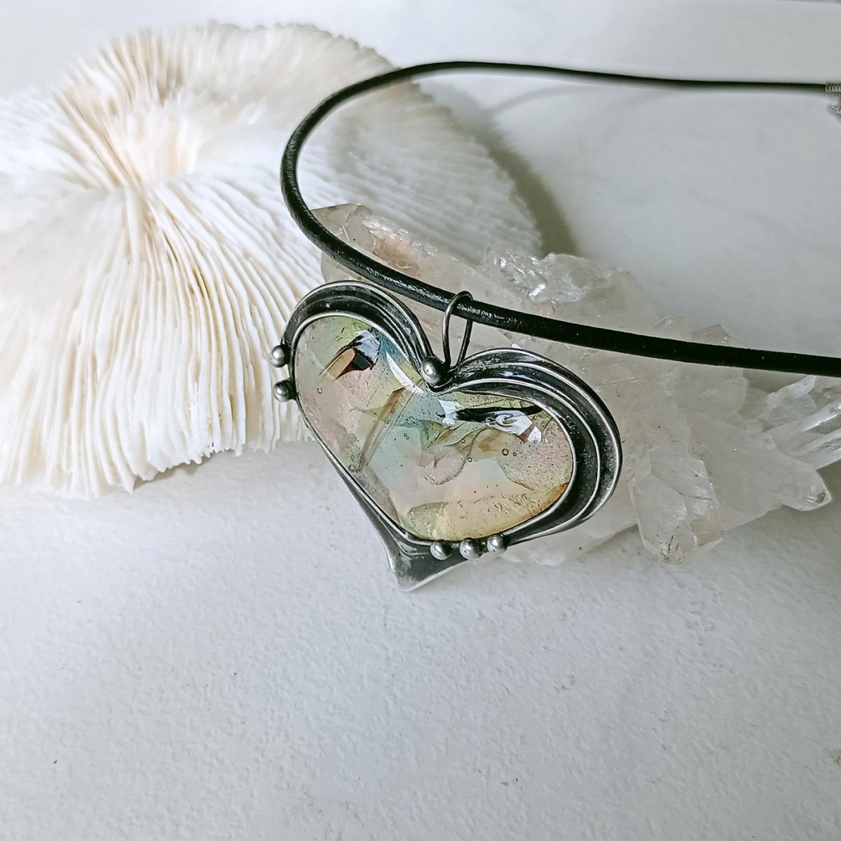 Autorský šperk vyroben tiffany technikou z bezolovnatého cínu se stříbrem, luxusního skla a drátu.