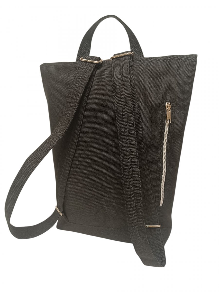 Posuvné popruhy o šířce 3cm. Zapínání na zip. Překlopná část se zapíná karabinou. Batoh se dá zvětšit o překlopnou část.
