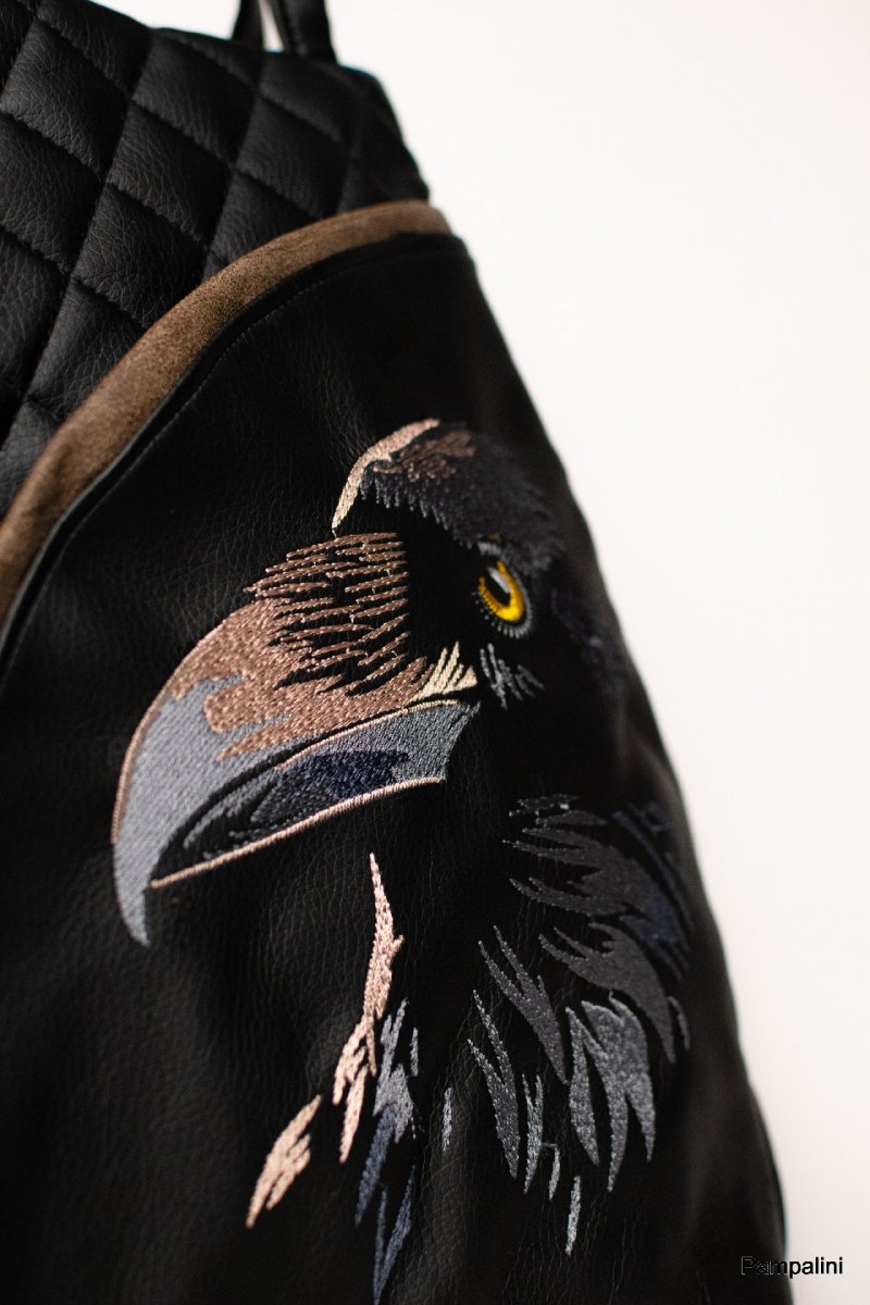 Vyrobený z velmi kvalitní koženky ozdobený strojovou výšivkou a šmrncovním prošíváním.