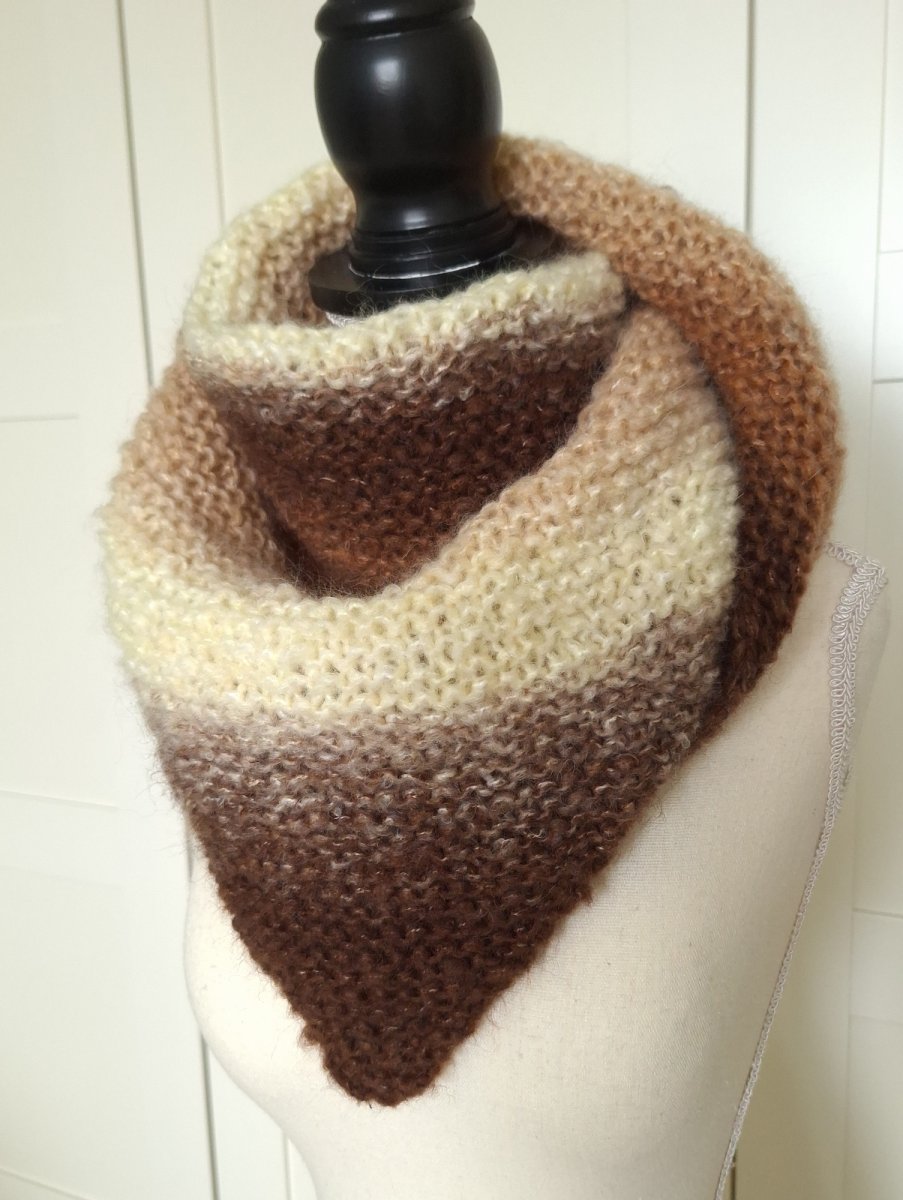 Teplý, lehoučký, chlupatý... je dívčí či dámský šátek upletený na větších jehlicích.