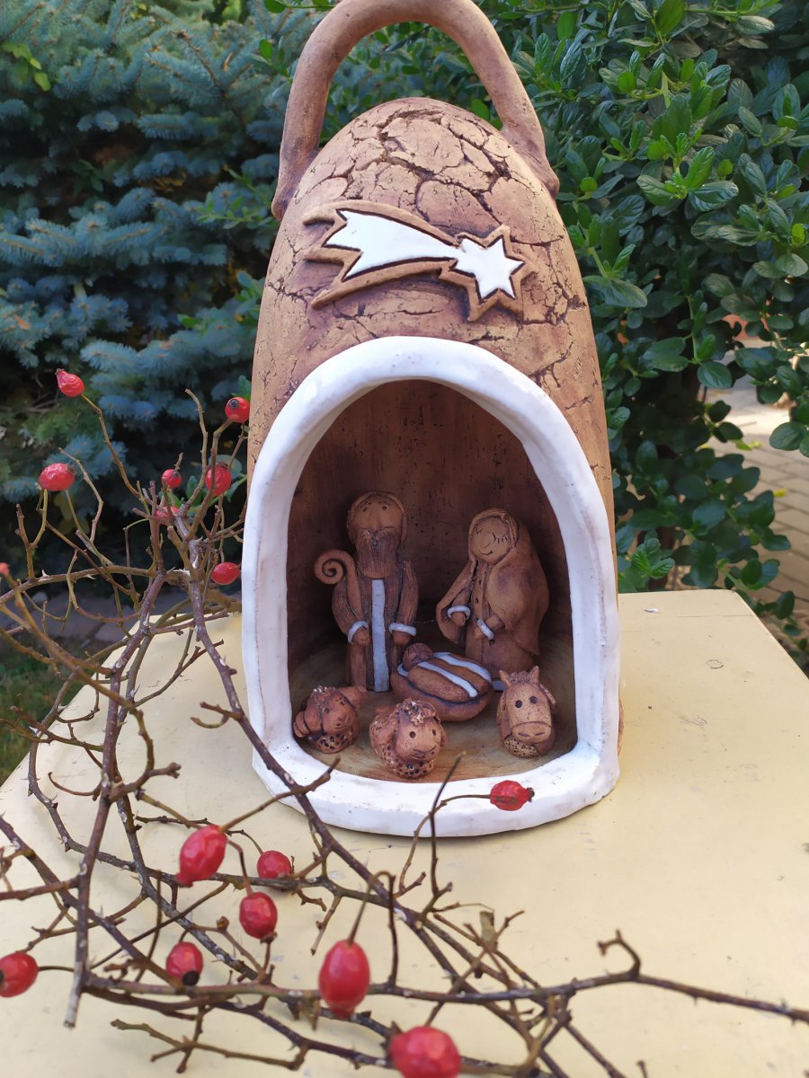 Šamotová hlína,vel.38 cm figurky jsou volně položené.