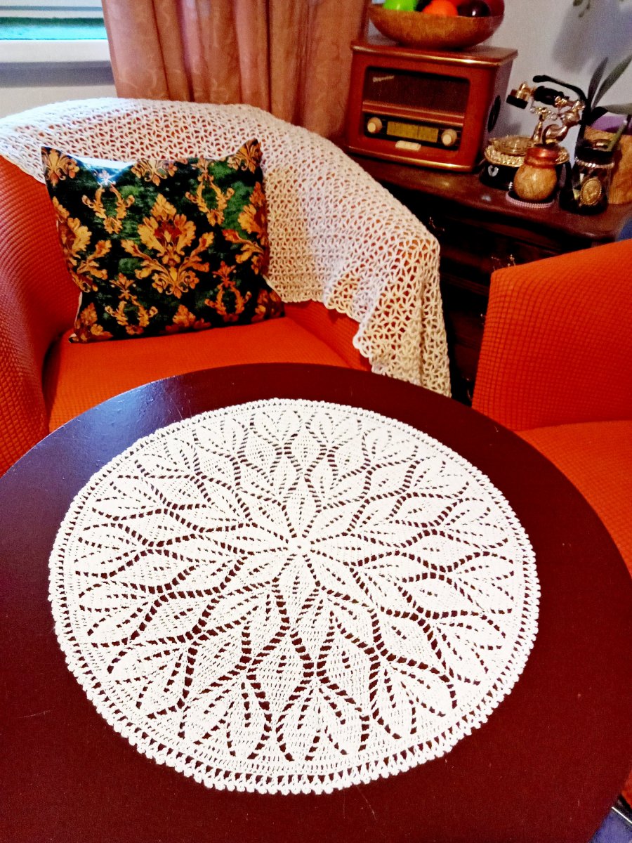 Bílá háčkovaná dečka na stůl, průměr 42cm.
