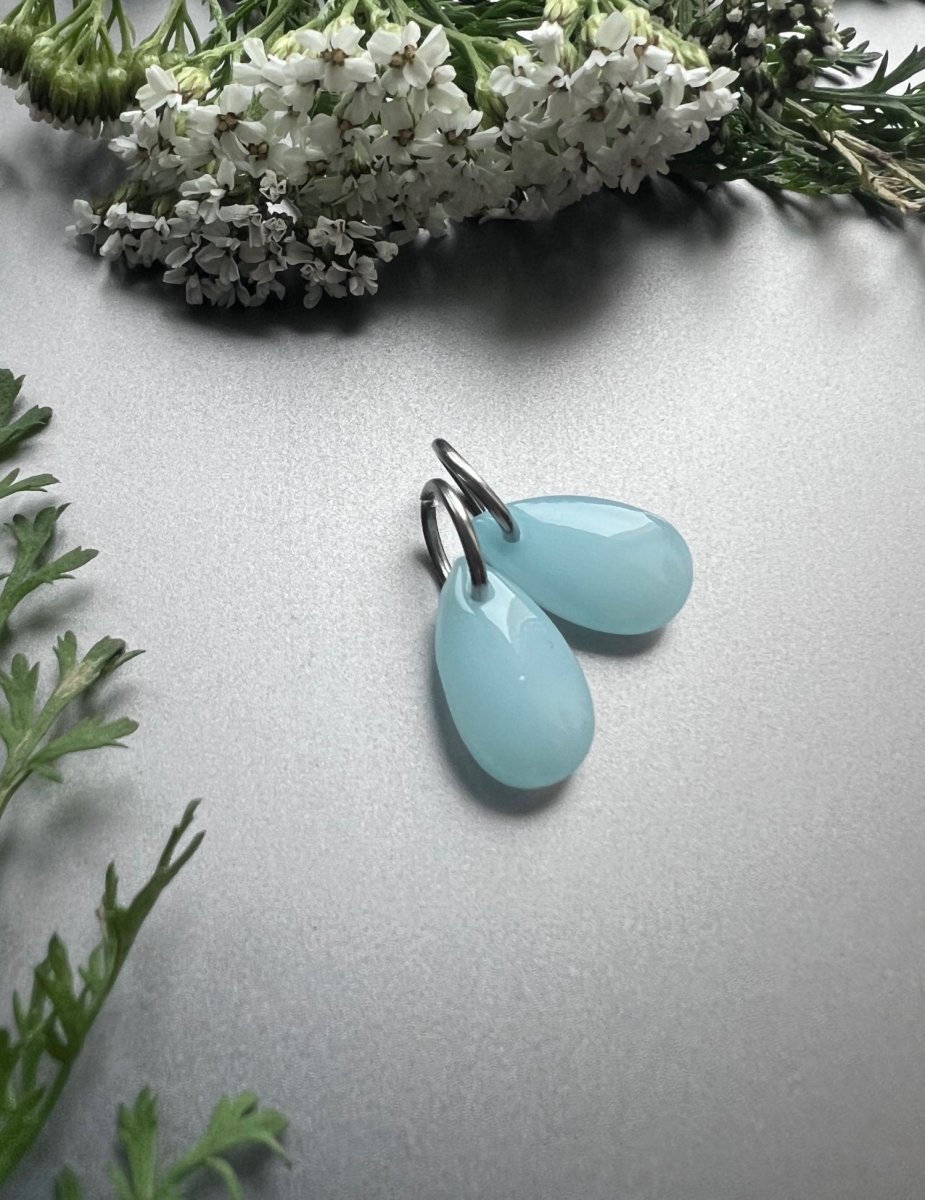 Volné přívěsky ke kruhovým náušnicím z mé nabídky (doplňkové foto) na výměnu - skleněné slzičky 8 x 14 mm na nerezovém kroužku - pár.