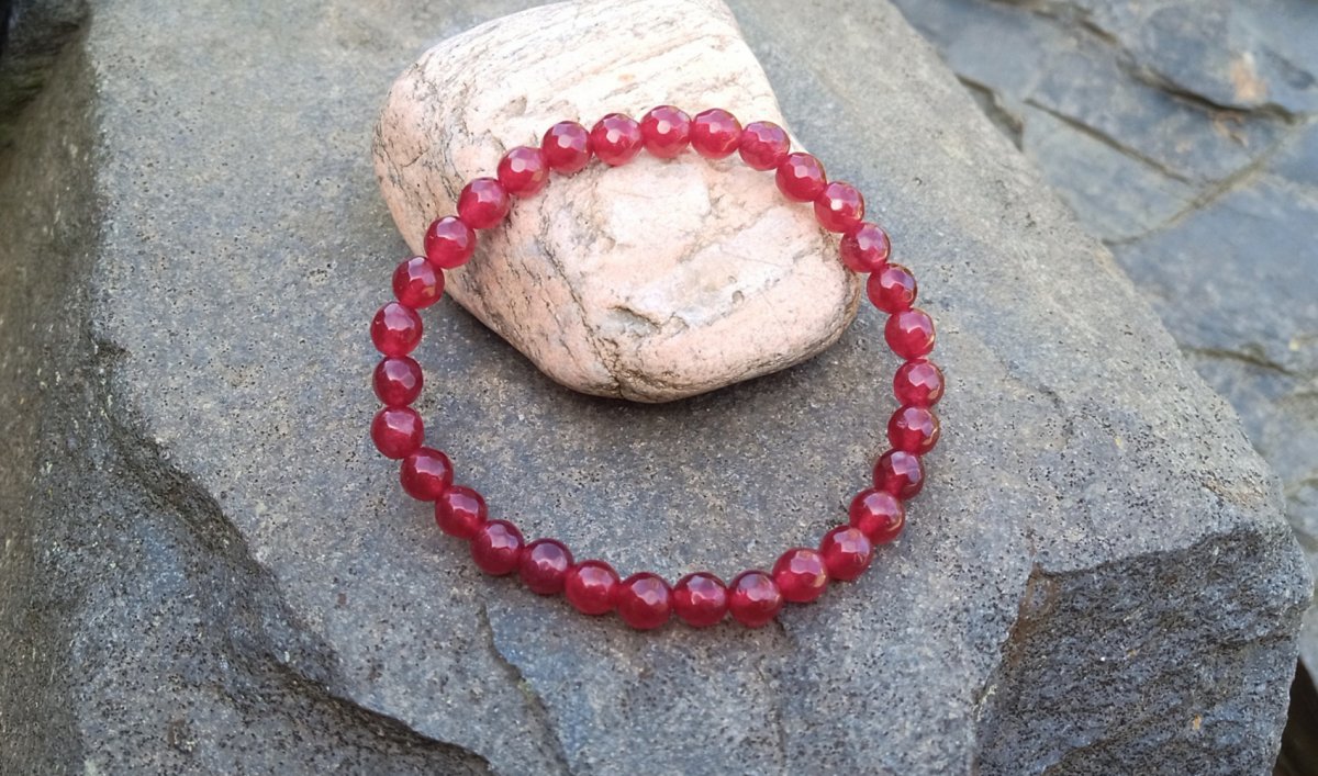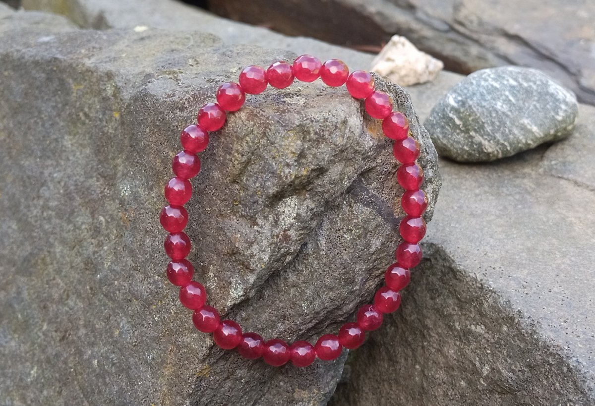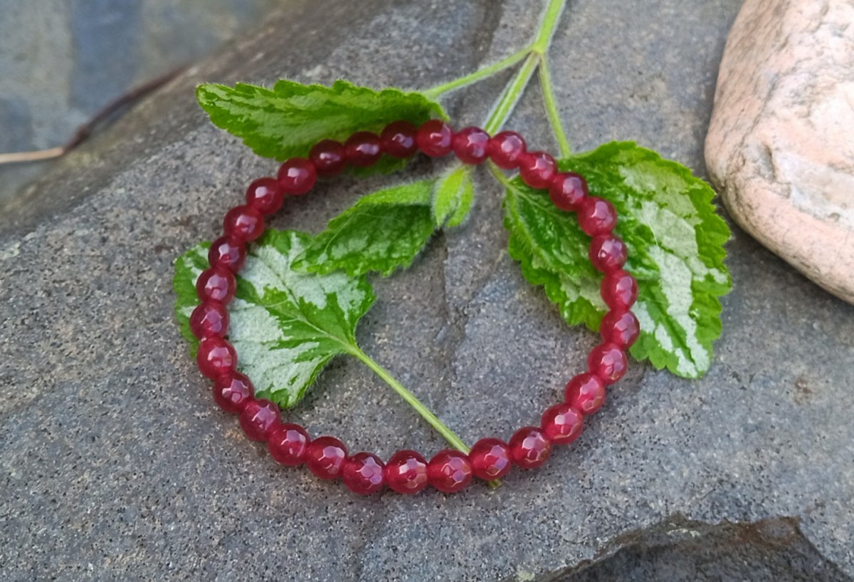 Něžný pružný náramek vyrobený z broušeného českého granátu o průměru 5 mm v nádherně temně červené barvě.