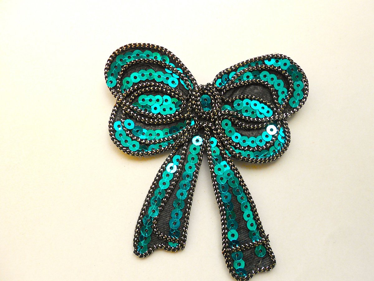 Brož velká mašle: 10x10 cm, celá mašle je zespodu podlepená - zpevněná riflovinou, na kterou je připevněn brožový můstek z bižuterního kovu.