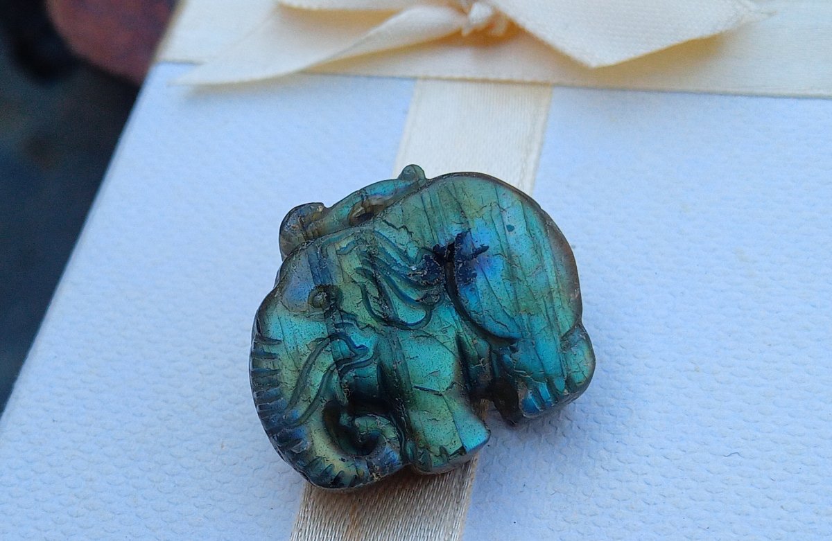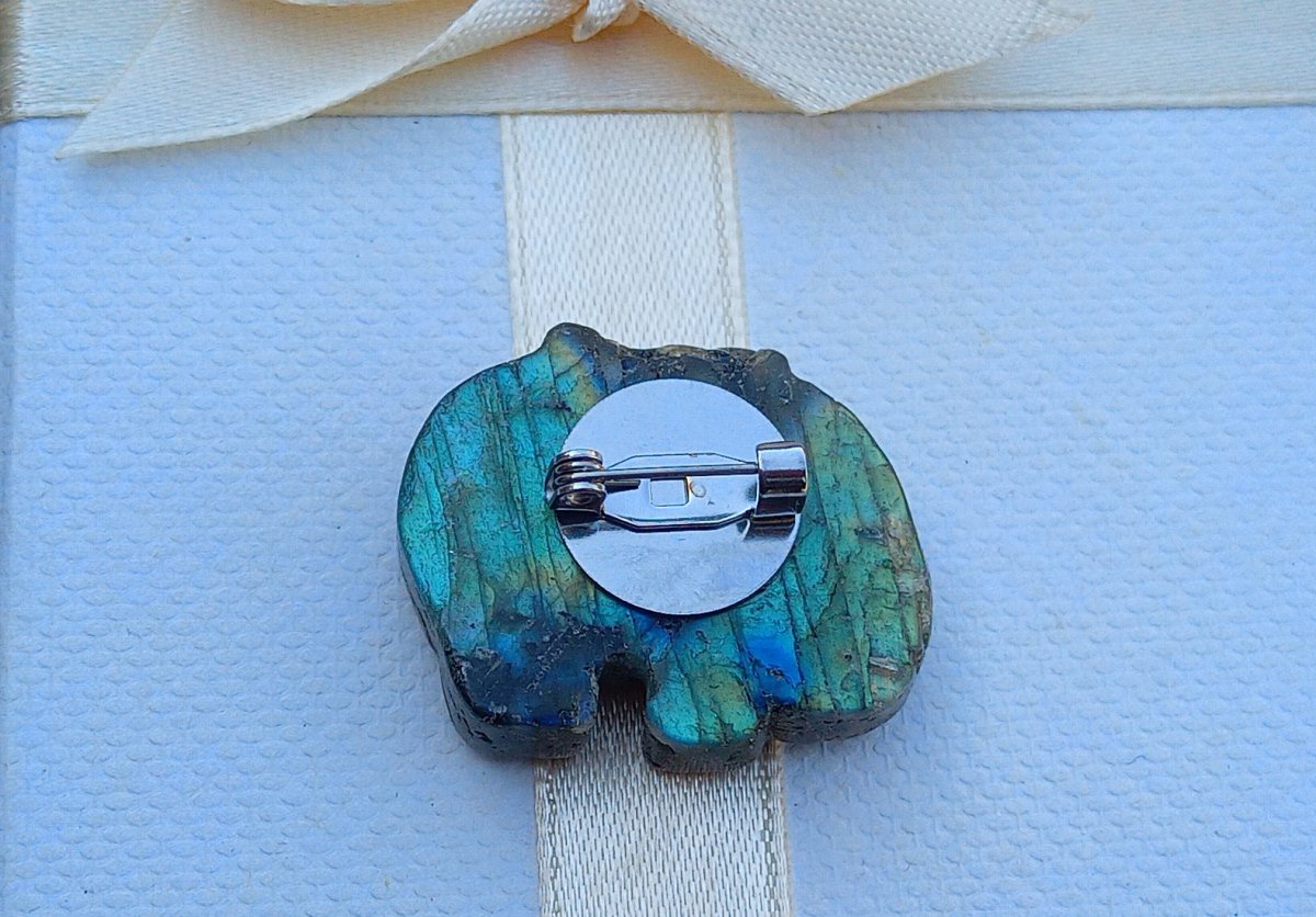 Ozdobte svůj oděv šperkem, který v sobě nese sílu přírody a hlubokou symboliku. Tato ručně vyřezávaná brož ve tvaru slona je vyrobena z labradoritu, fascinujícího minerálu, který je proslulý svou proměnlivou hrou barev. Každý pohyb na světle odhalí nové modré a zelené odlesky, díky čemuž je každý kus naprostým originálem.
