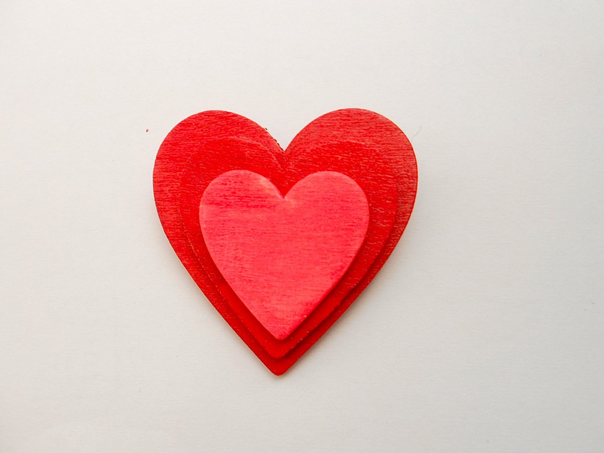 Dřevěná brož srdíčka 5x5 cm s dárkovým pytlíčkem, viz. 2. fotografie, brožový můstek z bižuterního kovu, namalováno a přelakováno bezbarvým lakem vhodným i na hračky .