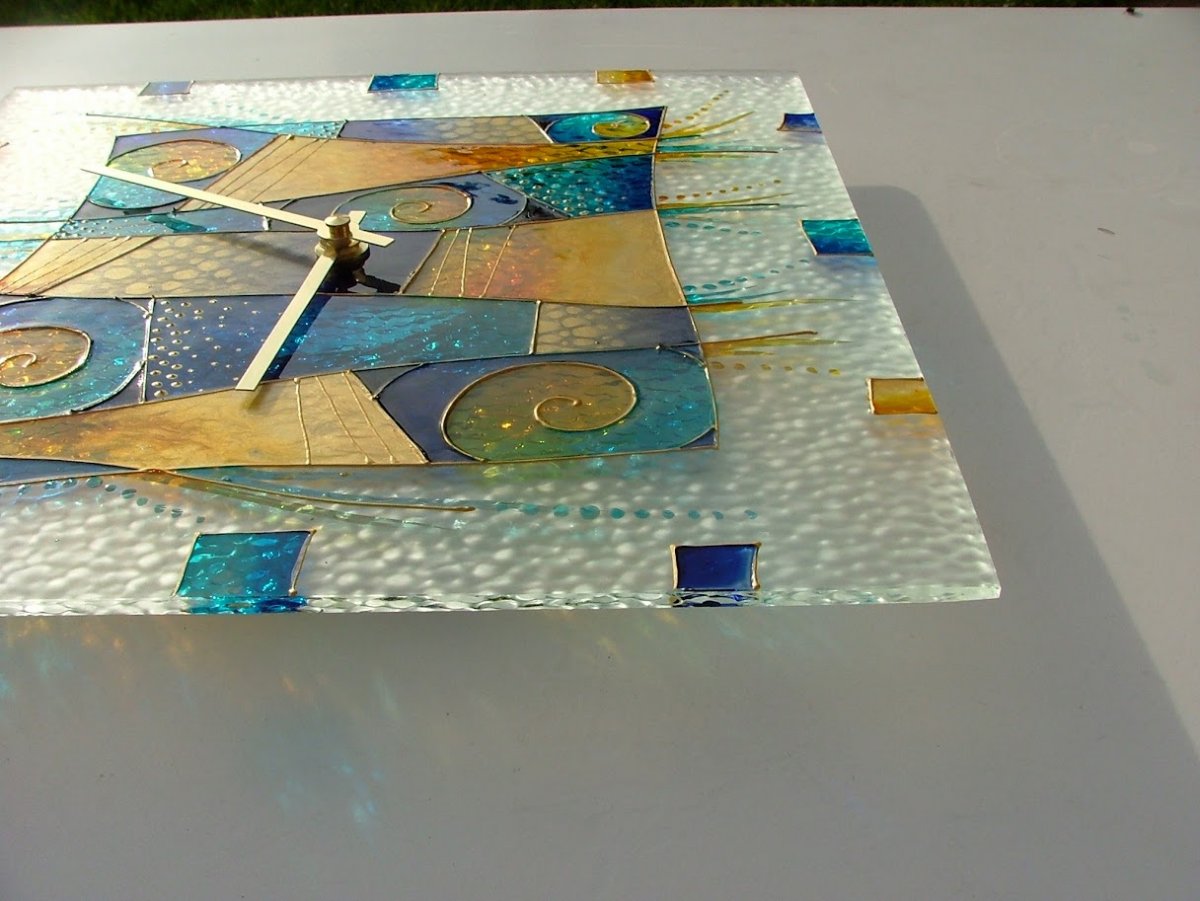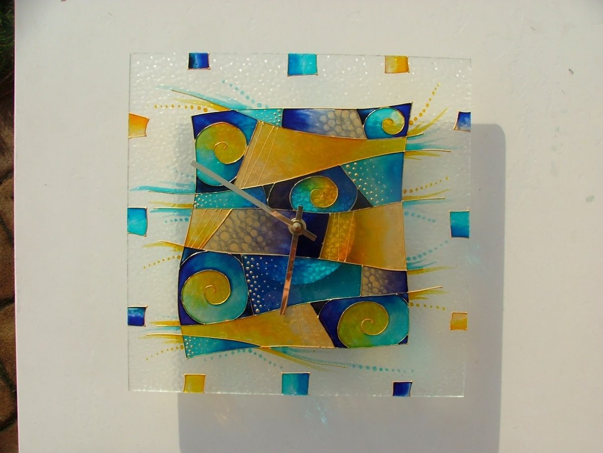 Abstraktní umělecké skleněné hodiny: Tanec spirál a zlatých linií