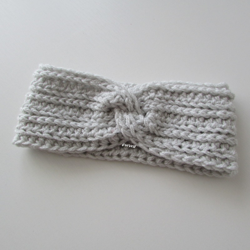 Háčkovaná hřejivá čelenka, široká cca 10 cm,