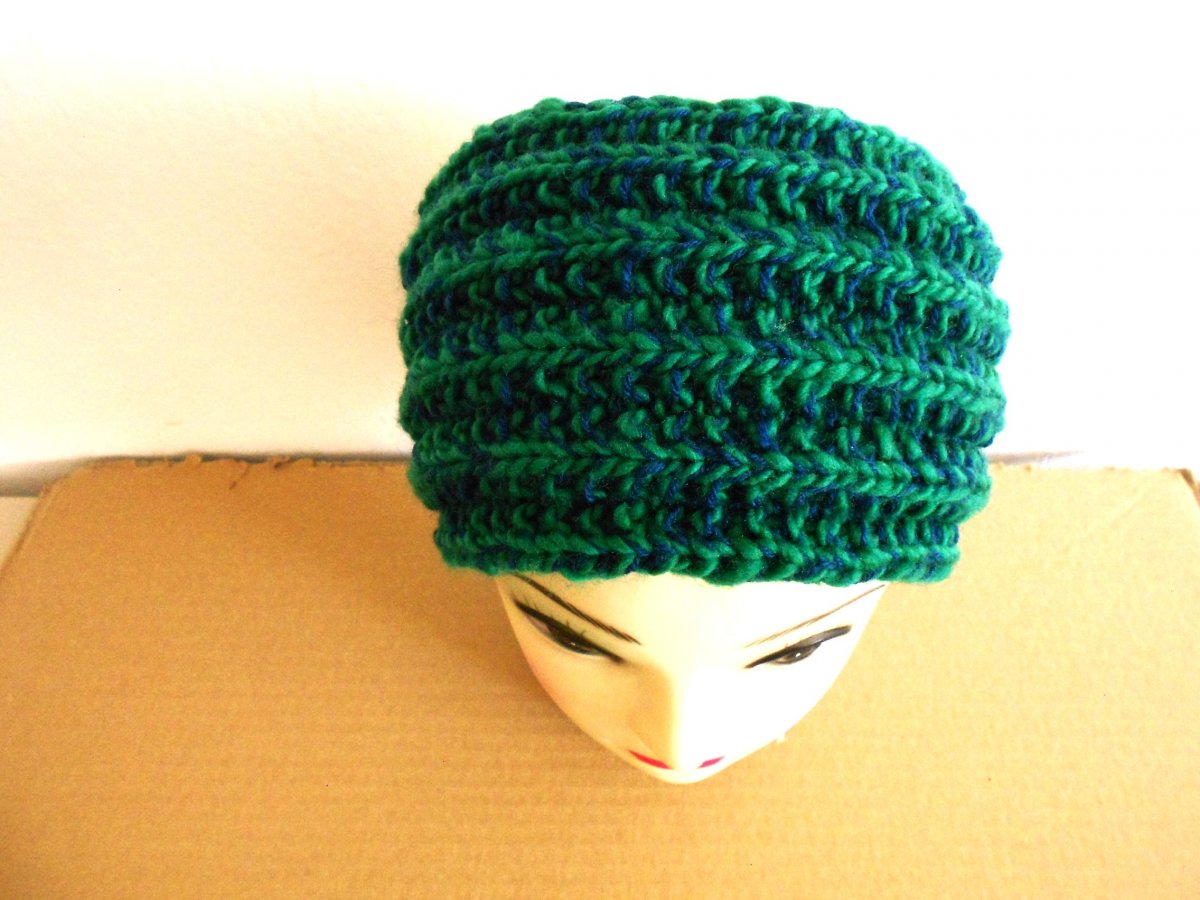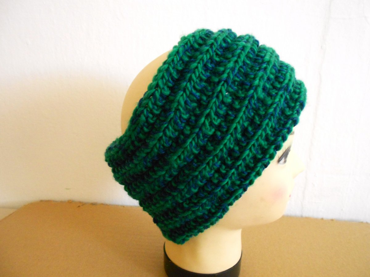 Ručně pletená, teplá, zeleno-modrá čelenka, 70% merino, 15% vlna, 15% polyamid , velmi pružný vzor. Obvod hlavy 58-65 cm, šířka 11 cm. Doporučuji jemné praní a sušit volně položené.