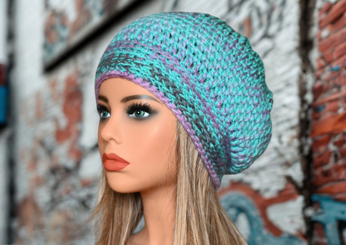 HÁČKOVANÁ ČEPICE V BARETKOVÉM STYLU – TYRKYSOVÁ S RŮŽOVOU