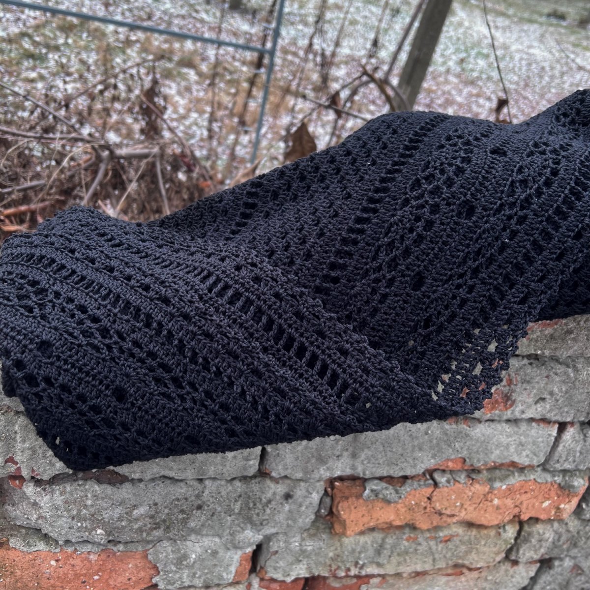 Maxi háčkovaný šátek - pléd z černé bavlněné příze.