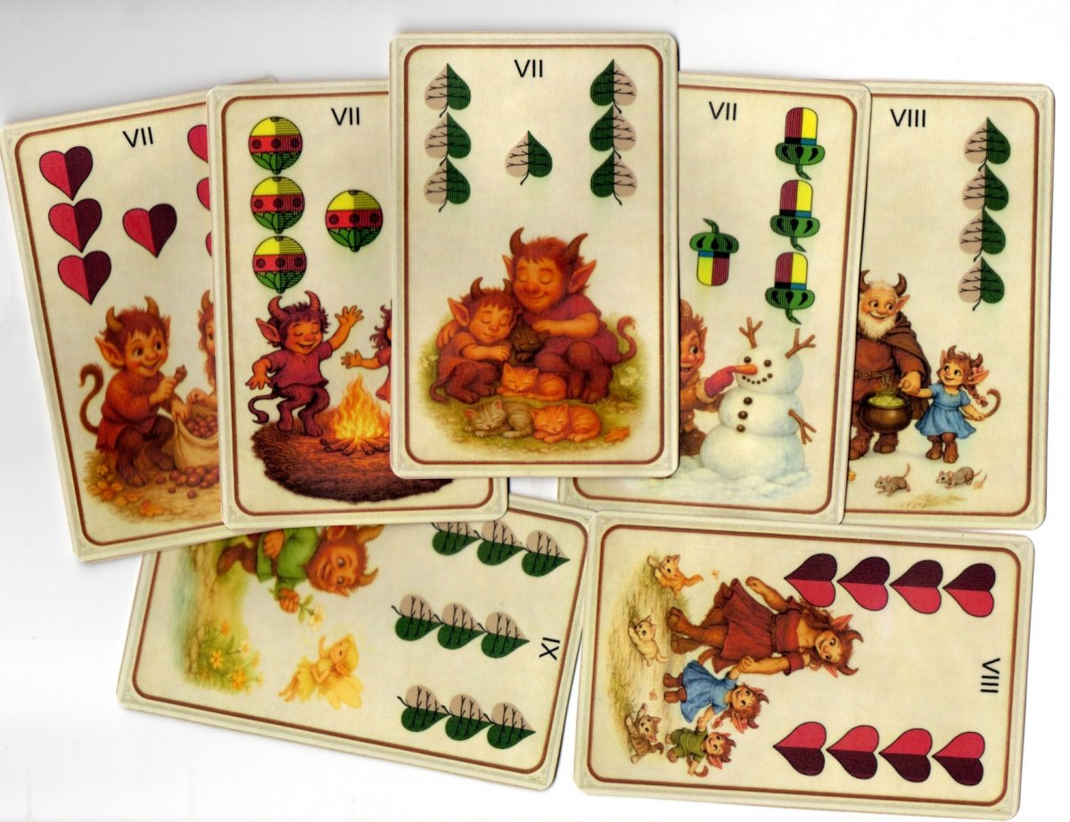 Čertovské mariášové pekelné karty tisk na papír 250g. vel 11 4x7,4 cm , 32 karet ruční práce