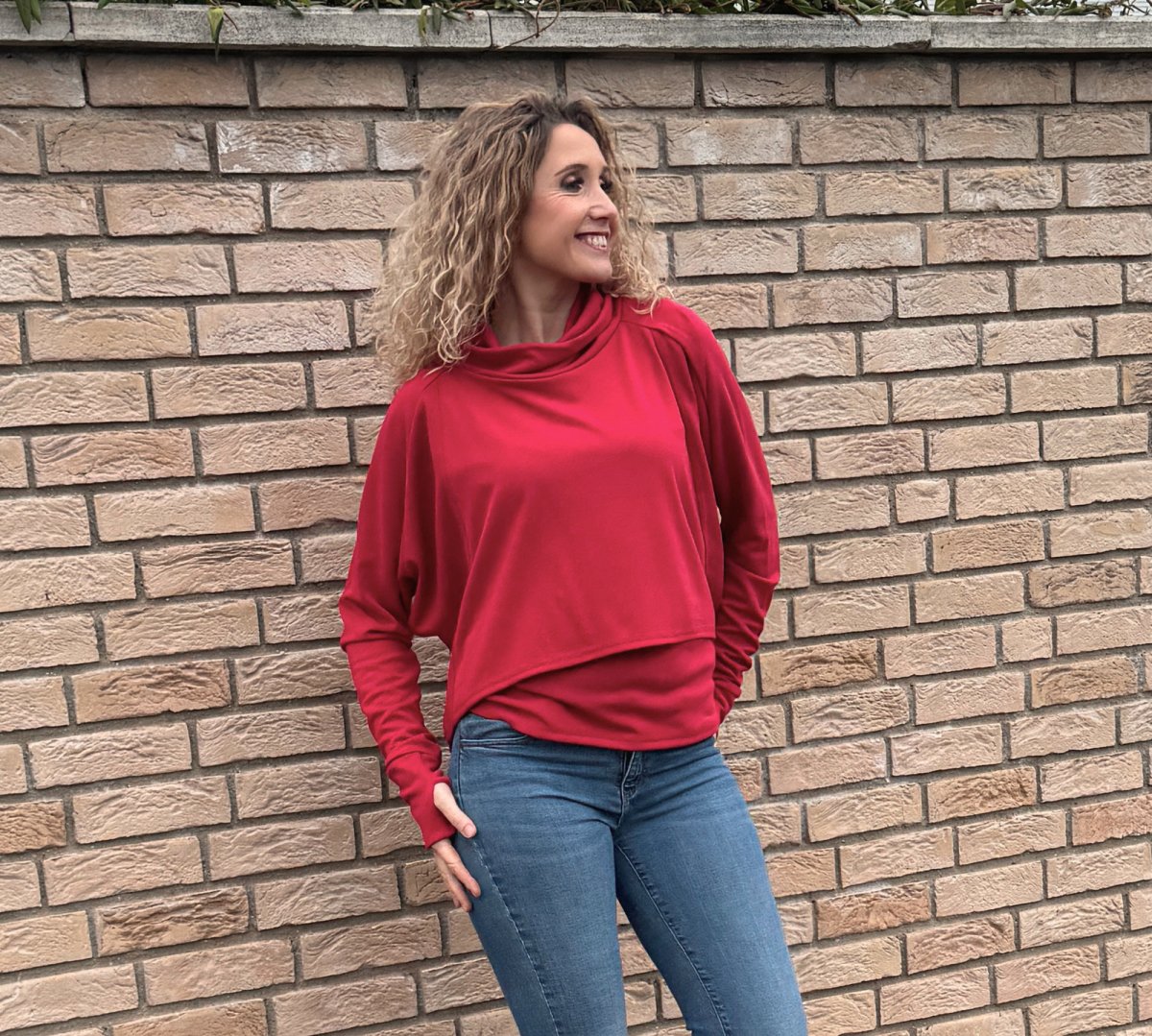 Volný rolák je ušitý ze směsového úpletu (68%vis/28%pes/4%ela).