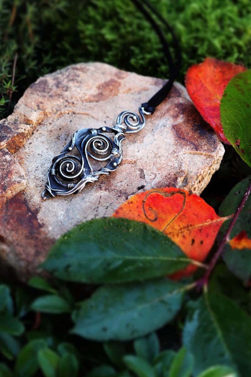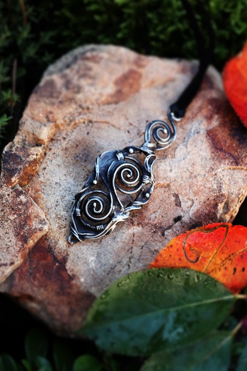 Originální ručně cínovaný šperk s mystickým motivem spirál, zavěšený na černé kožené šňůrce. Spirála je pradávný symbol nekonečna, životní cesty a obnovy. Přináší sílu, ochranu a připomíná, že každý konec je začátkem nového cyklu. Tento výrazný šperk je ideální pro ženy, které milují mystiku, keltské tradice a chtějí nosit šperk s hlubším významem.