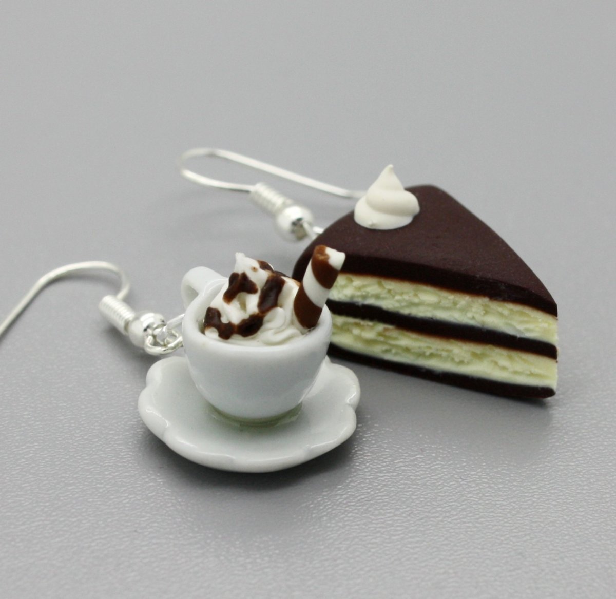 modelované z polymerové hmoty , nádobí je porcelánové, náušničky jsou lehké zavěšeno na stříbrných bižuterních afroháčcích,