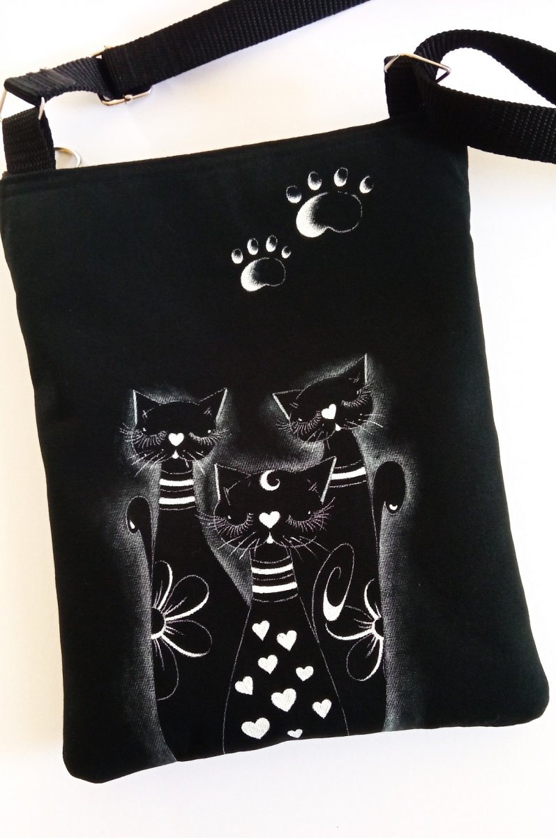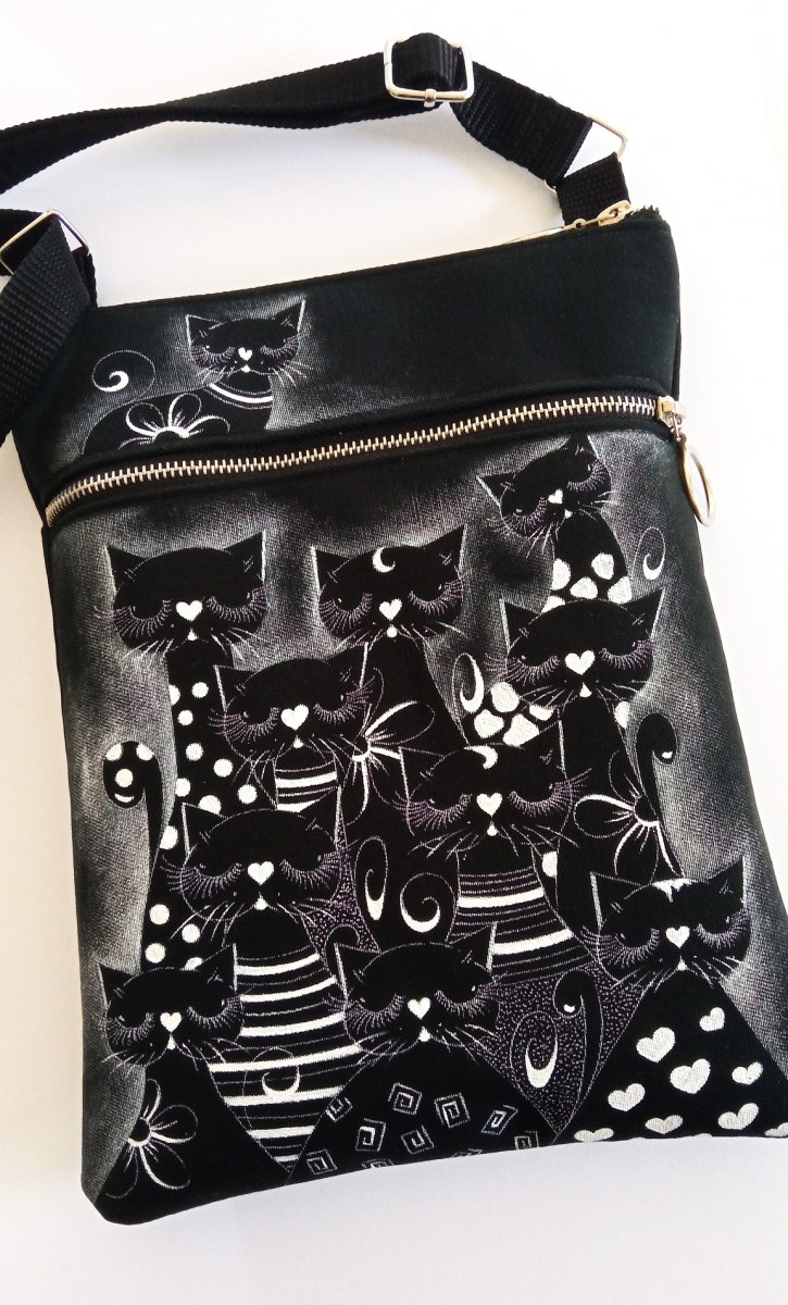 Ručně šitá a malovaná crossbody kabelka+kapsička+dárek(taška na nákup) s kočičkami