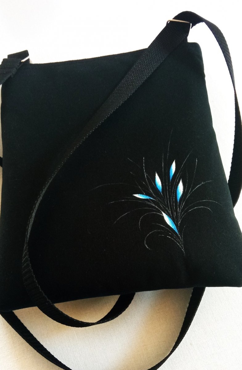 Ručně šitá a malovaná crossbody kabelka s kapsou