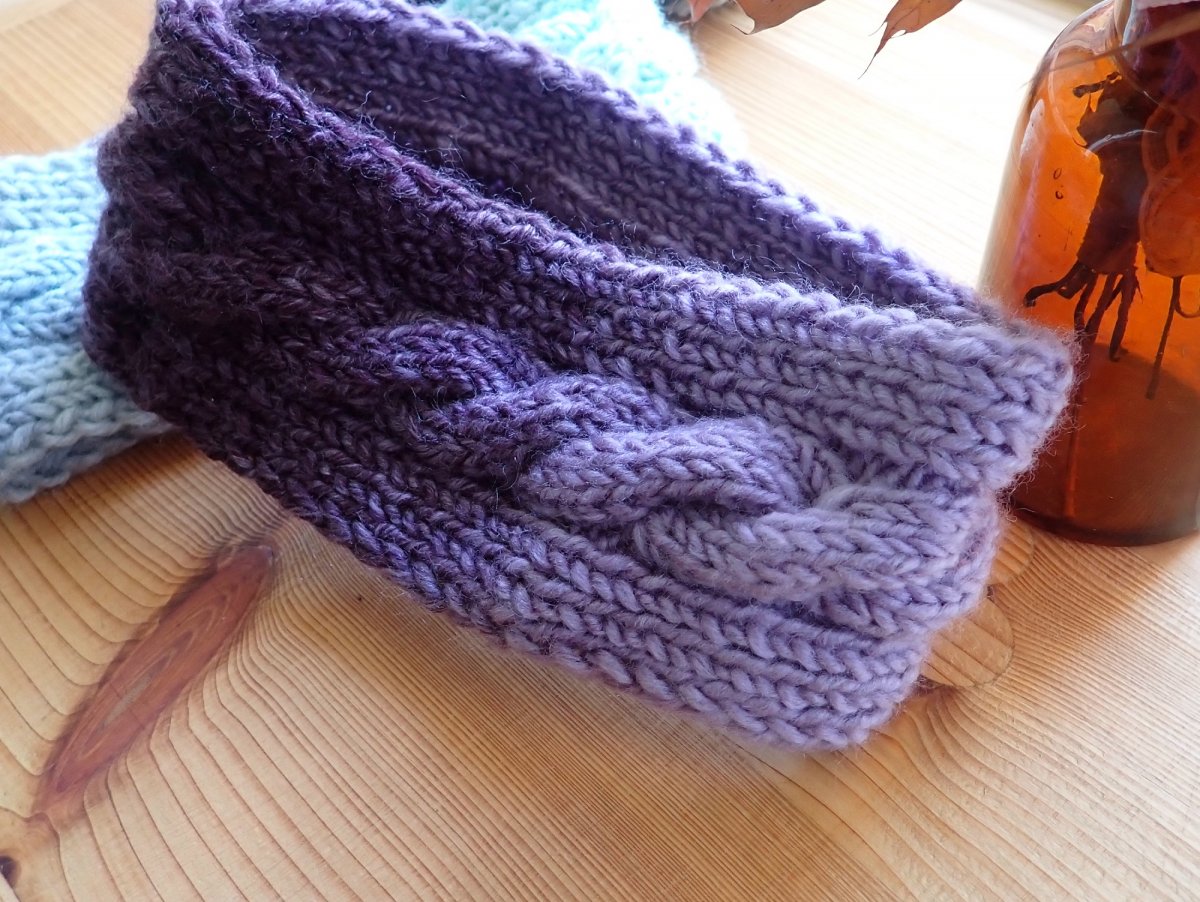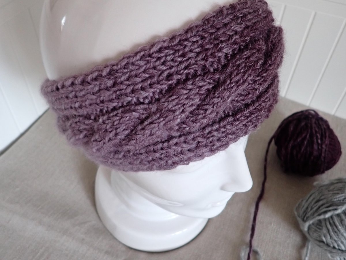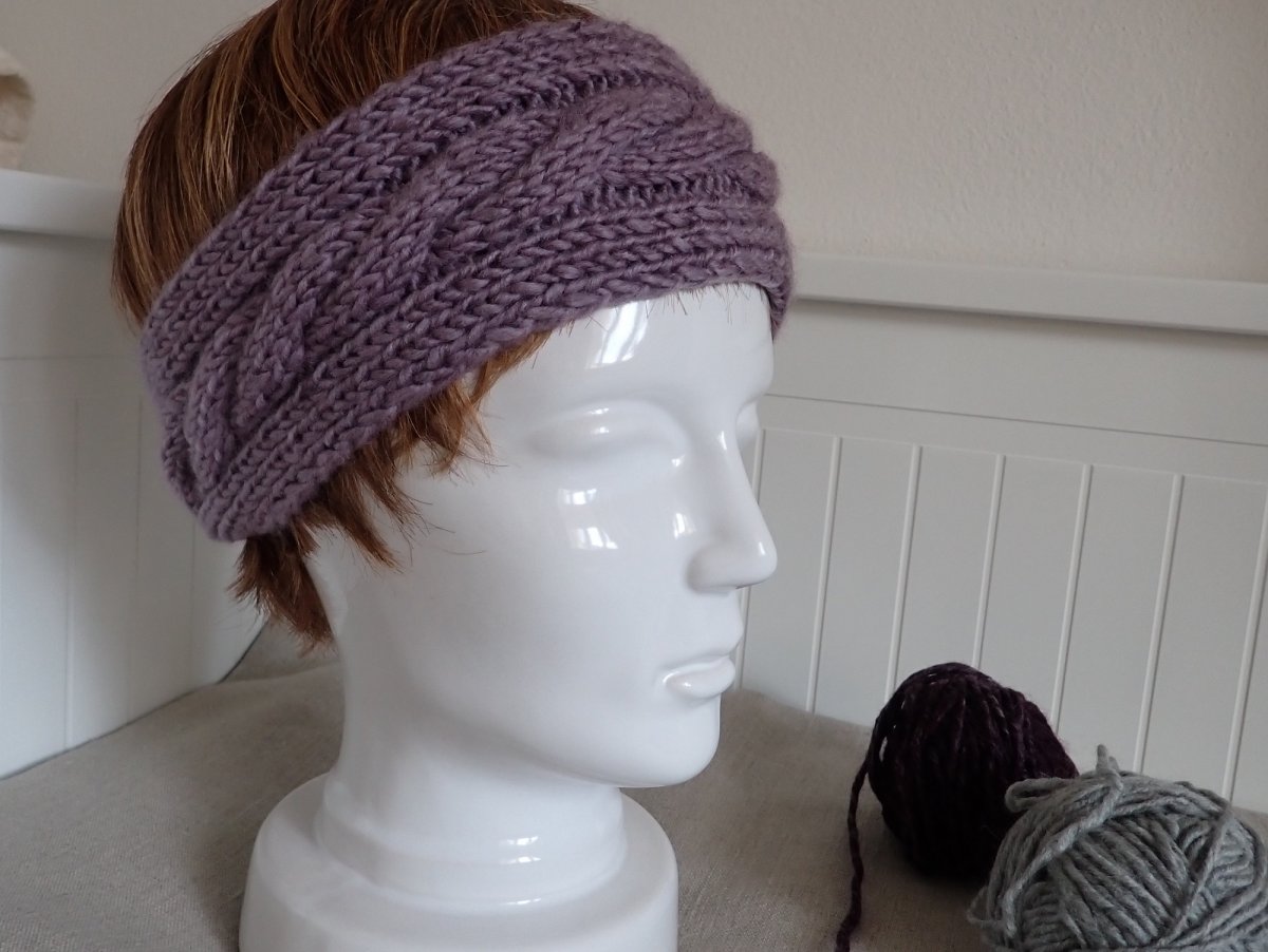Ručně pletená melírovaná dámská čelenka s copánkem je určená na hlavičku o velikosti 54-56. Široká je 8 cm.