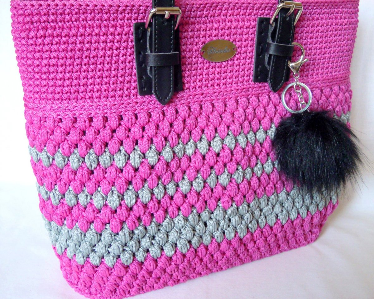 Tato velká kabelka je háčkovaná z tureckých šňůr.
