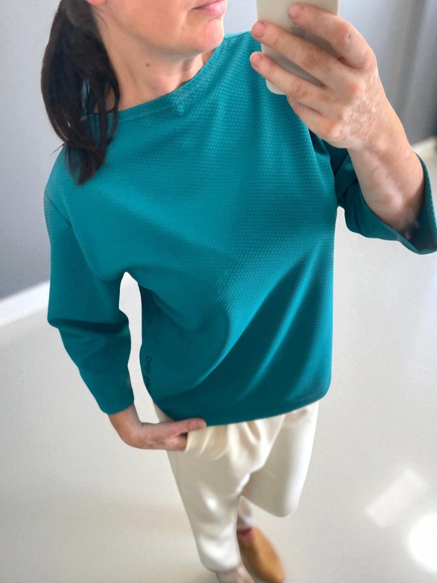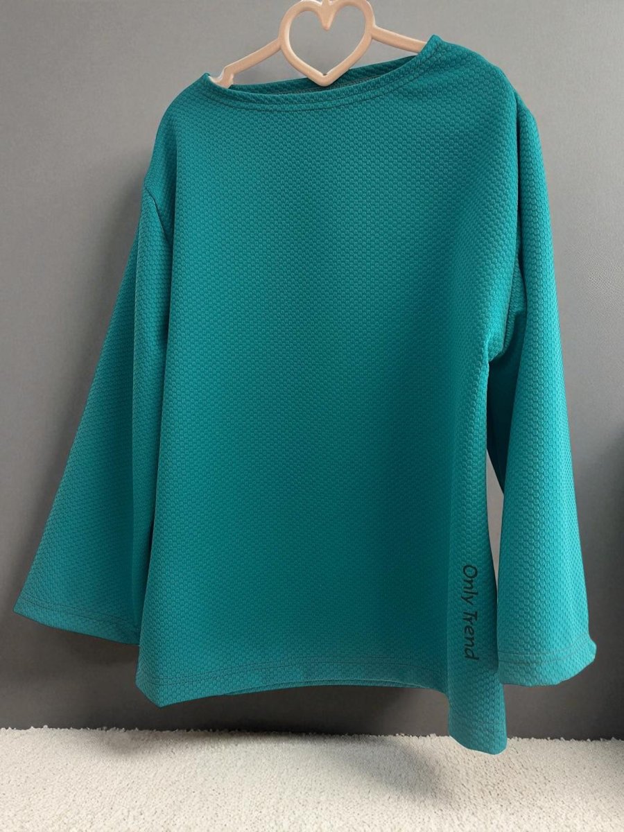 Mikina, co má styl i duši Krátká do pasu, s 3/4 širším rukávem, který dodává ležérní eleganci.