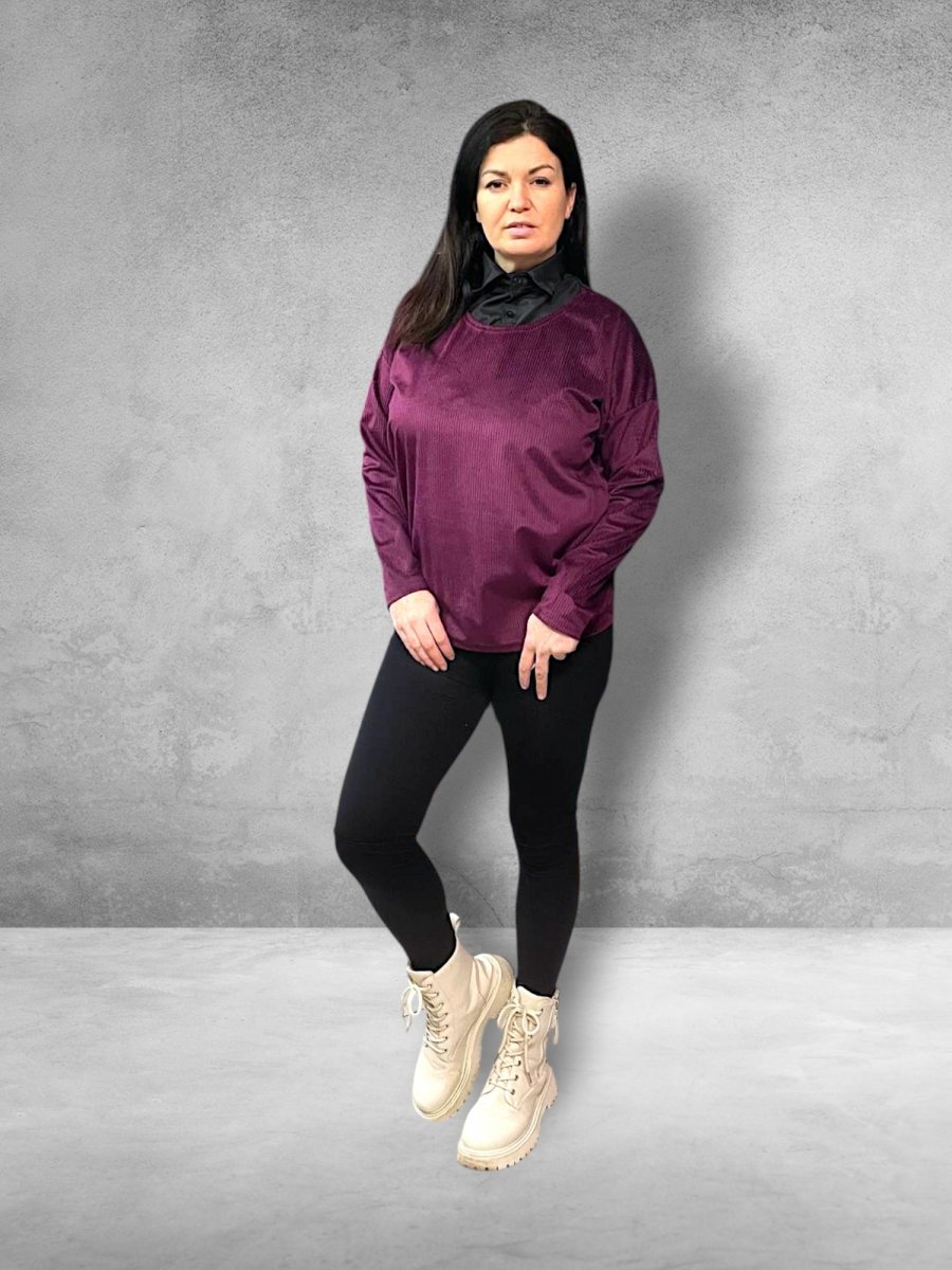 Hledáš kousek, který je pohodlný, ale zároveň má šmrnc? Tato mikina v netopýřím střihu je přesně to, co tvůj šatník potřebuje! Volná, vzdušná, a přitom elegantní díky oddělávací košilové vsadce, která dodá outfitu vrstvený efekt bez námahy.
