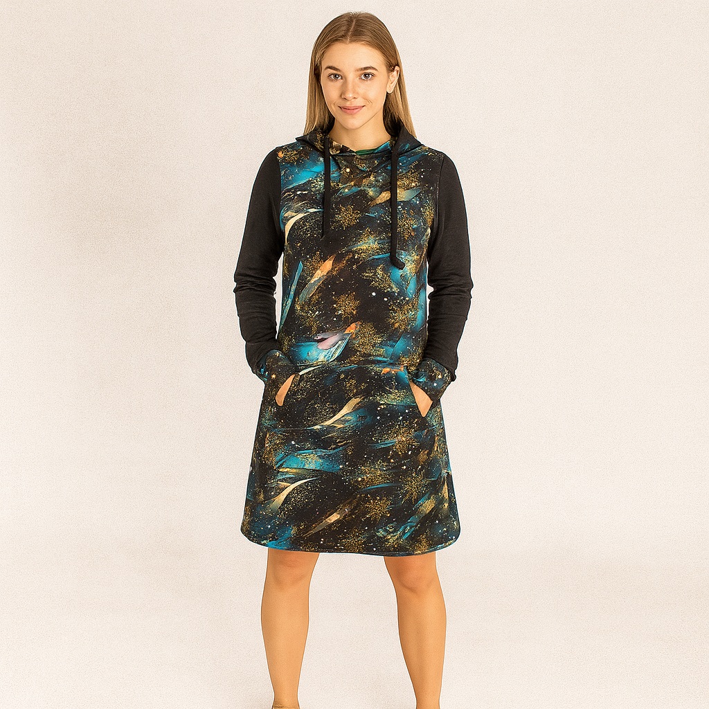 Dámská mikino-tunika s kapucí - zlaté vločky (teplákovina)