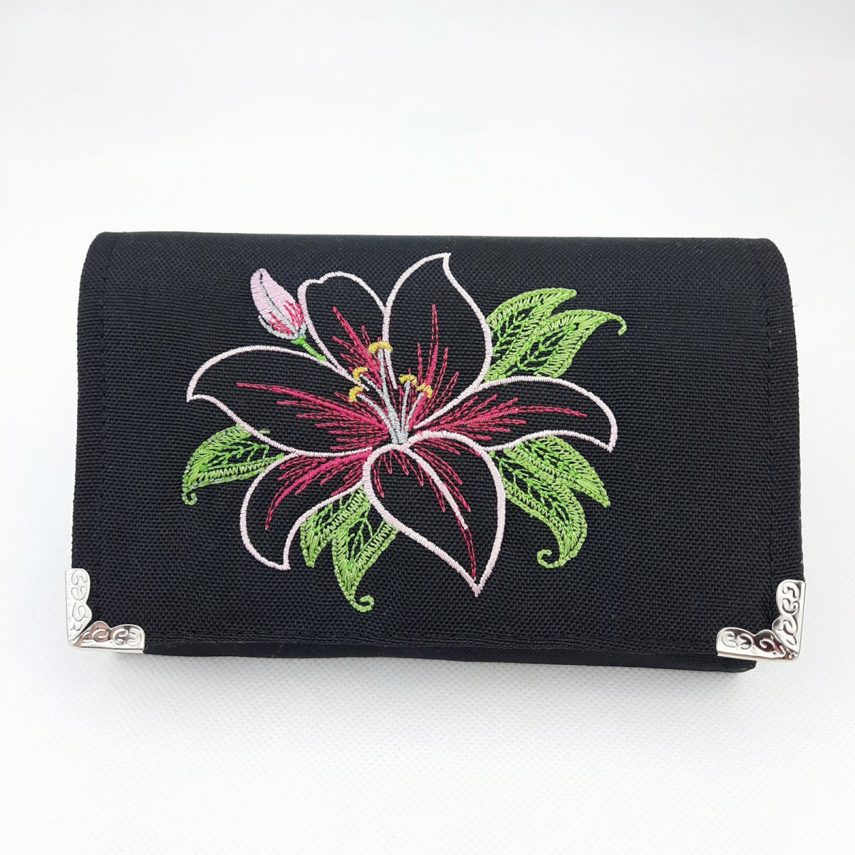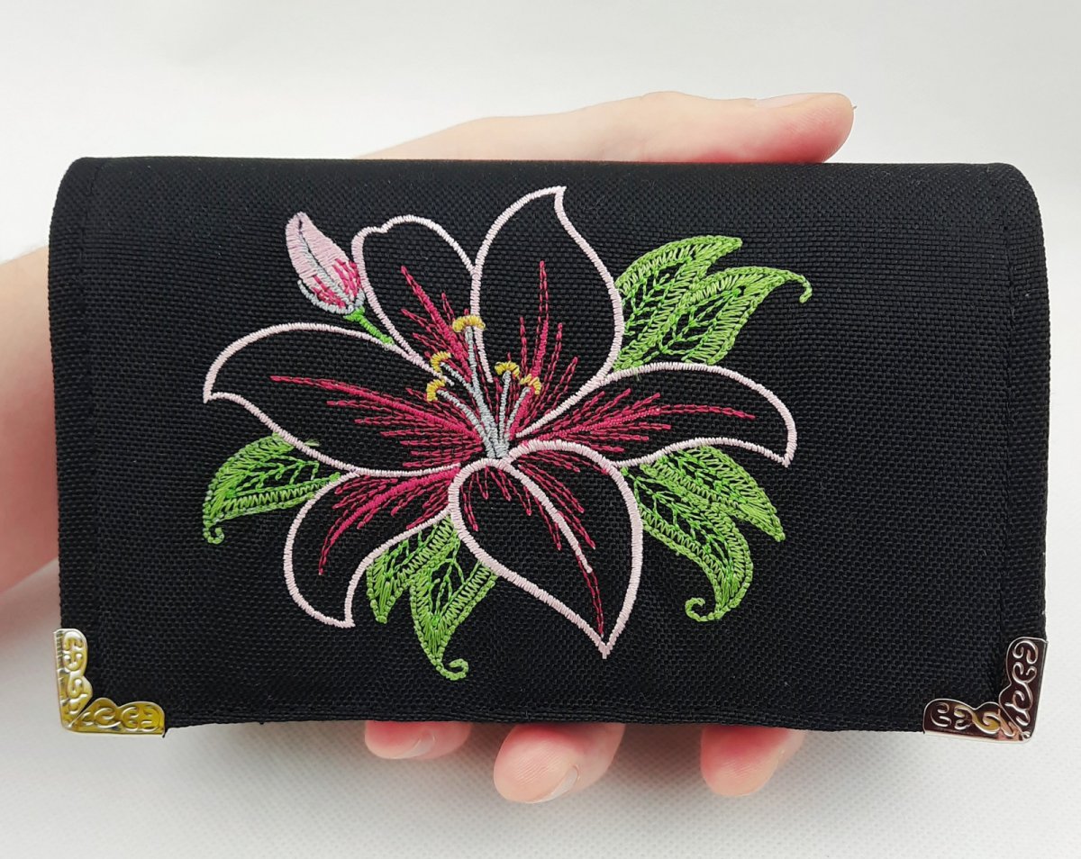 Elegantná a originálna čierna dámska priehradková peňaženka ozdobená výšivkou s kvetinovým motívom. Peňažeka je Tvoj každodenný spoločník, preto na dojme záleží! Tak čo, urobíš aj ty dojem s touto chic peňaženkou?
