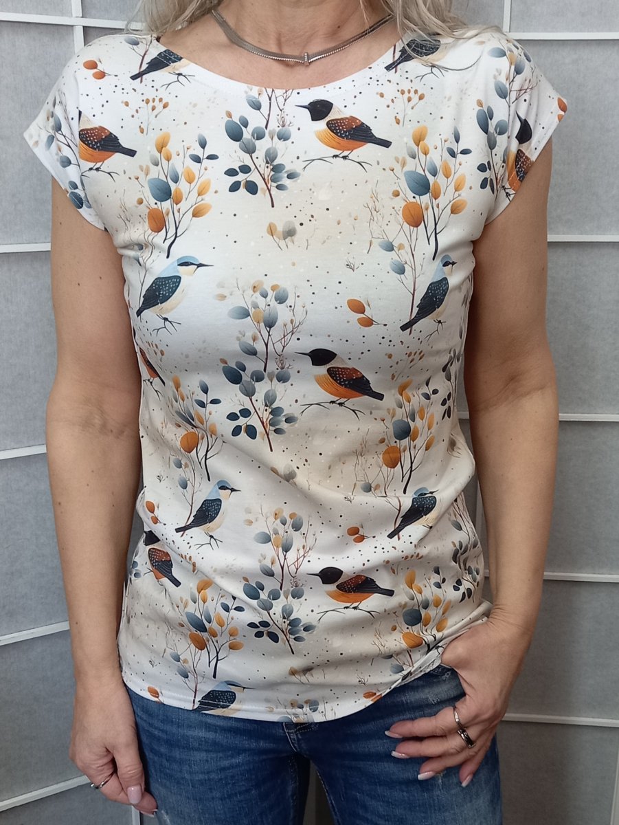 Styl a kombinace: Díky pestrému vzoru vypadá tričko skvěle k jednoduchým kouskům – vyzkoušejte ho s džínovými šortkami, bílými kalhotami nebo jednobarevnou sukní.
