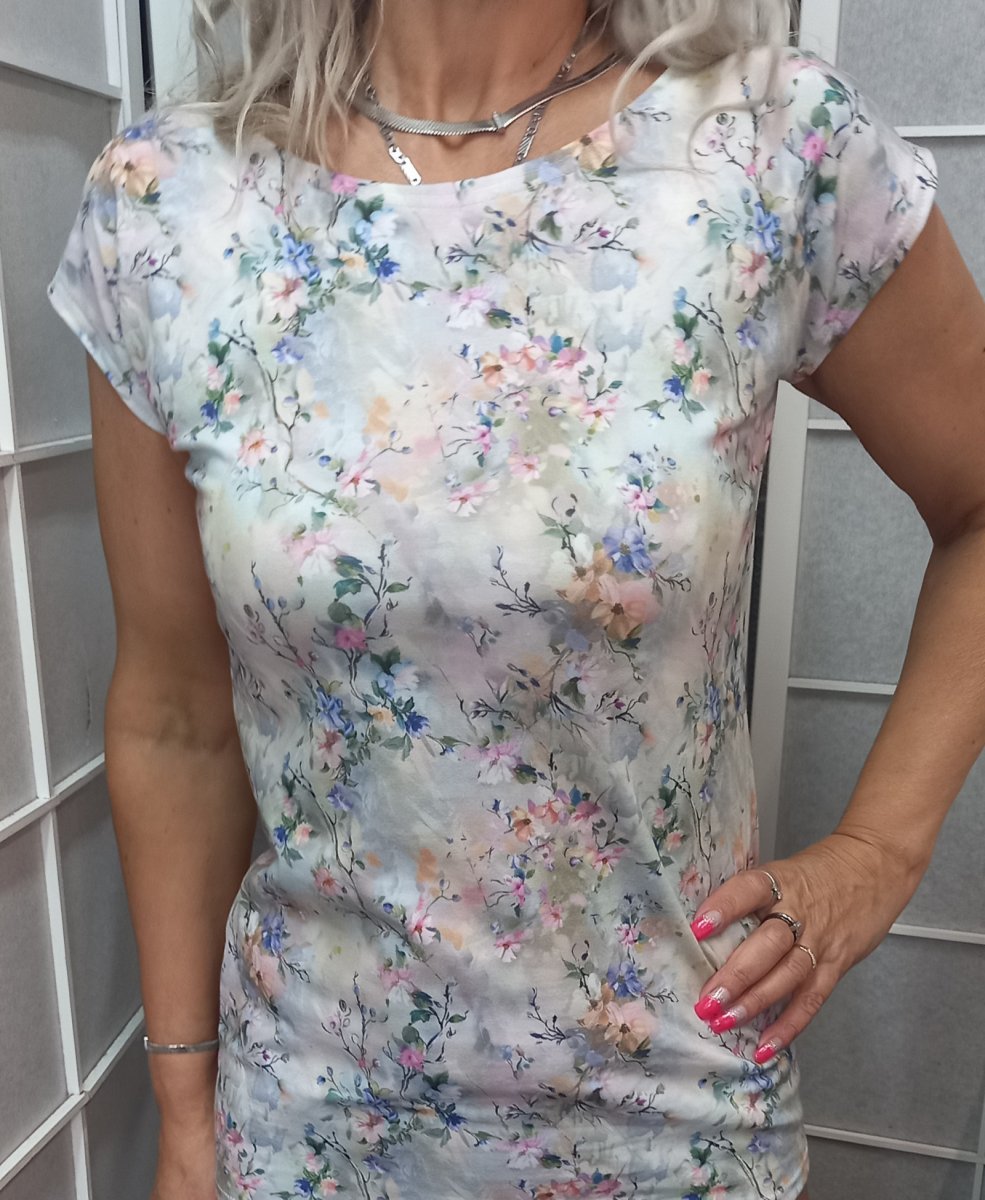 Styl a kombinace: Díky pestrému vzoru vypadá tričko skvěle k jednoduchým kouskům – vyzkoušejte ho s džínovými šortkami, bílými kalhotami nebo jednobarevnou sukní.