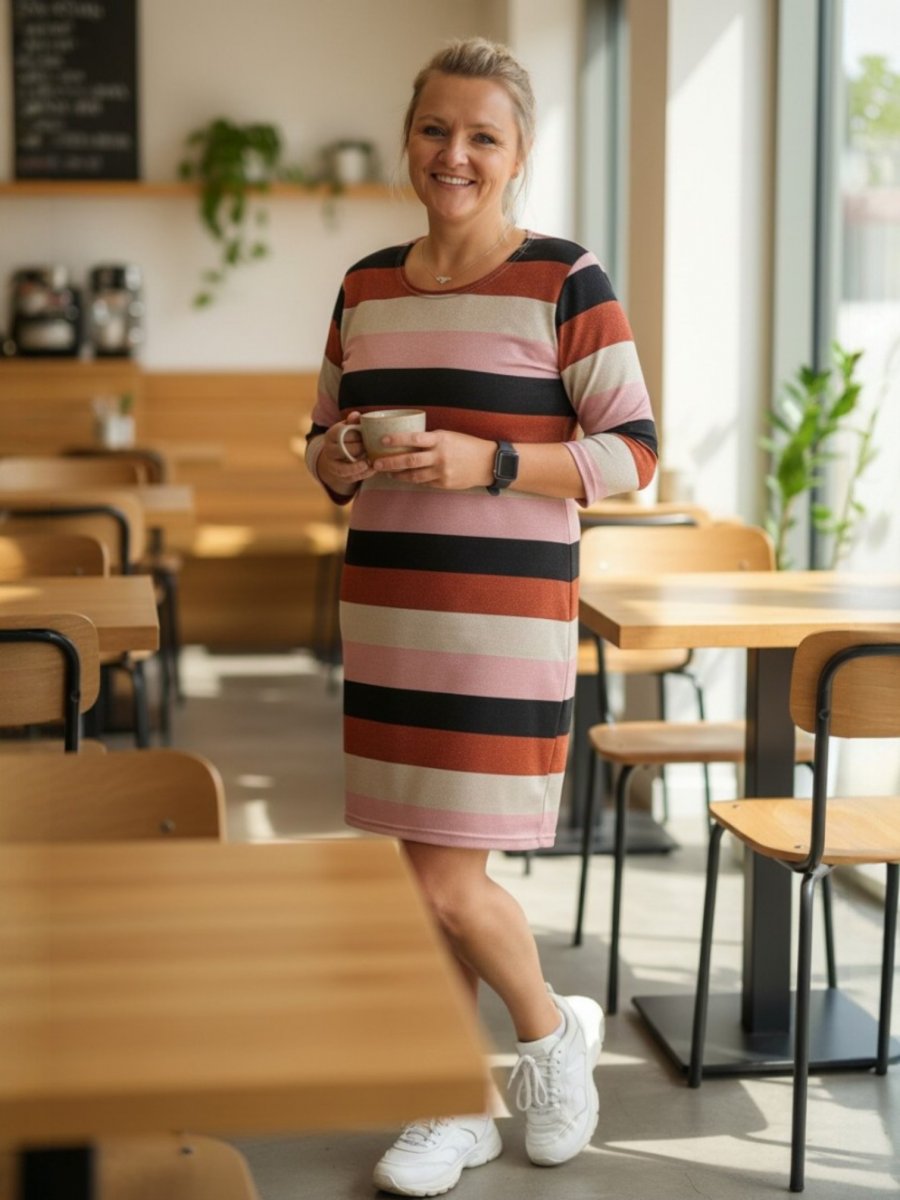 Stylové šaty s dlouhým rukávem z jemné lurexové látky s efektními pruhy, které dodávají outfitu šmrnc a sofistikovaný vzhled. Díky pružnému materiálu se krásně přizpůsobí postavě a zároveň zaručí pohodlí po celý den.