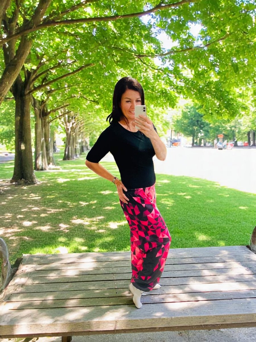 Na sobě mám M/L. Nosím M, váha 63kg, výška 169cm, hruď 96cm.
