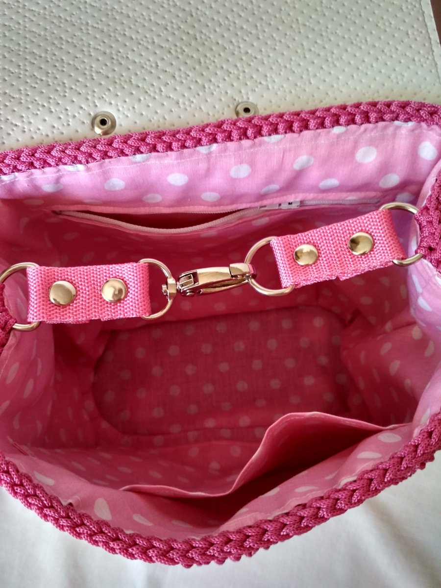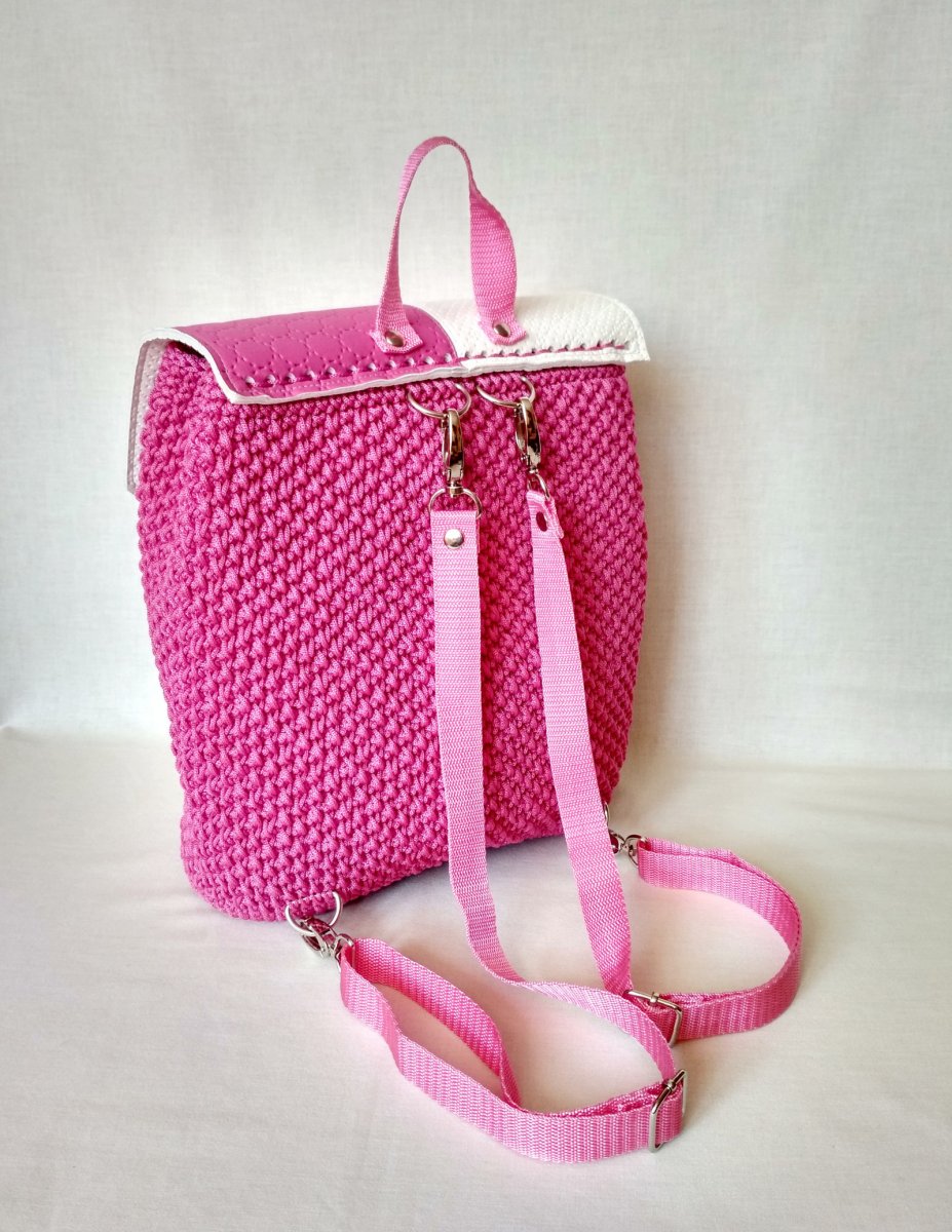 Batůžek je vyrobený z polypropylenových šňůr a je doplněný krásnou